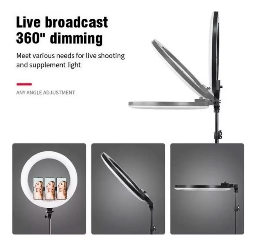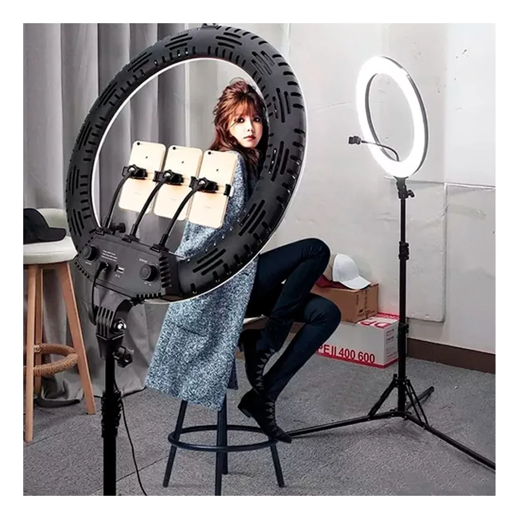 Anillo de luz de 45 cm, fuente de luz LED, temperatura de color: 3200 K-5600 K. Sin parpadeo, sin imágenes fantasma, sin reflejos.