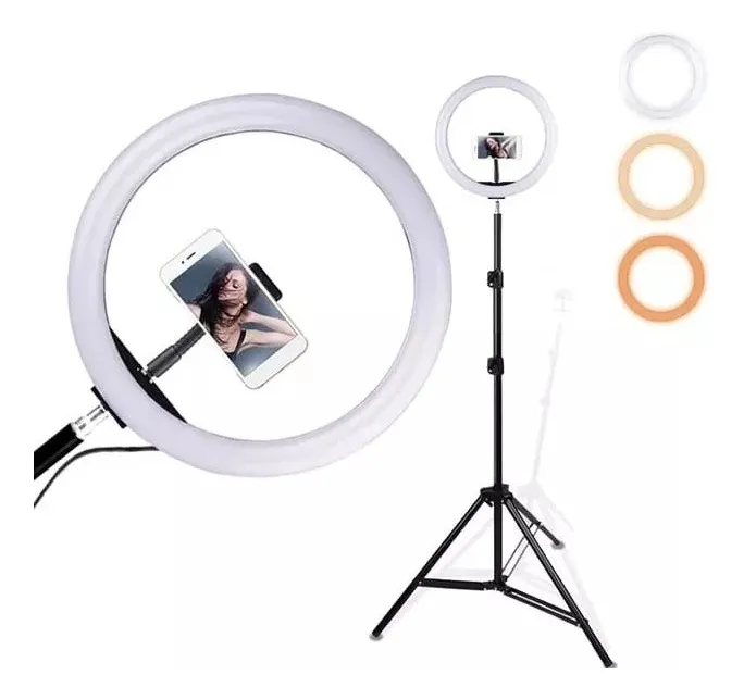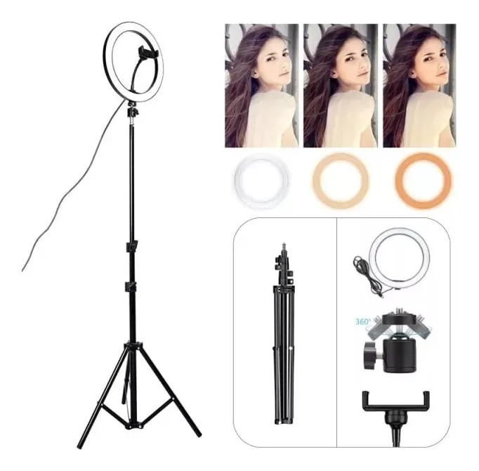 Este anillo de luz LED cuenta con tres tonos de luz brillantes, cada uno con tonos naturales fríos y cálidos. Es perfecto para fotografía, transmisión en vivo, videoconferencias, teletrabajo, TikTok y otras aplicaciones de iluminación.