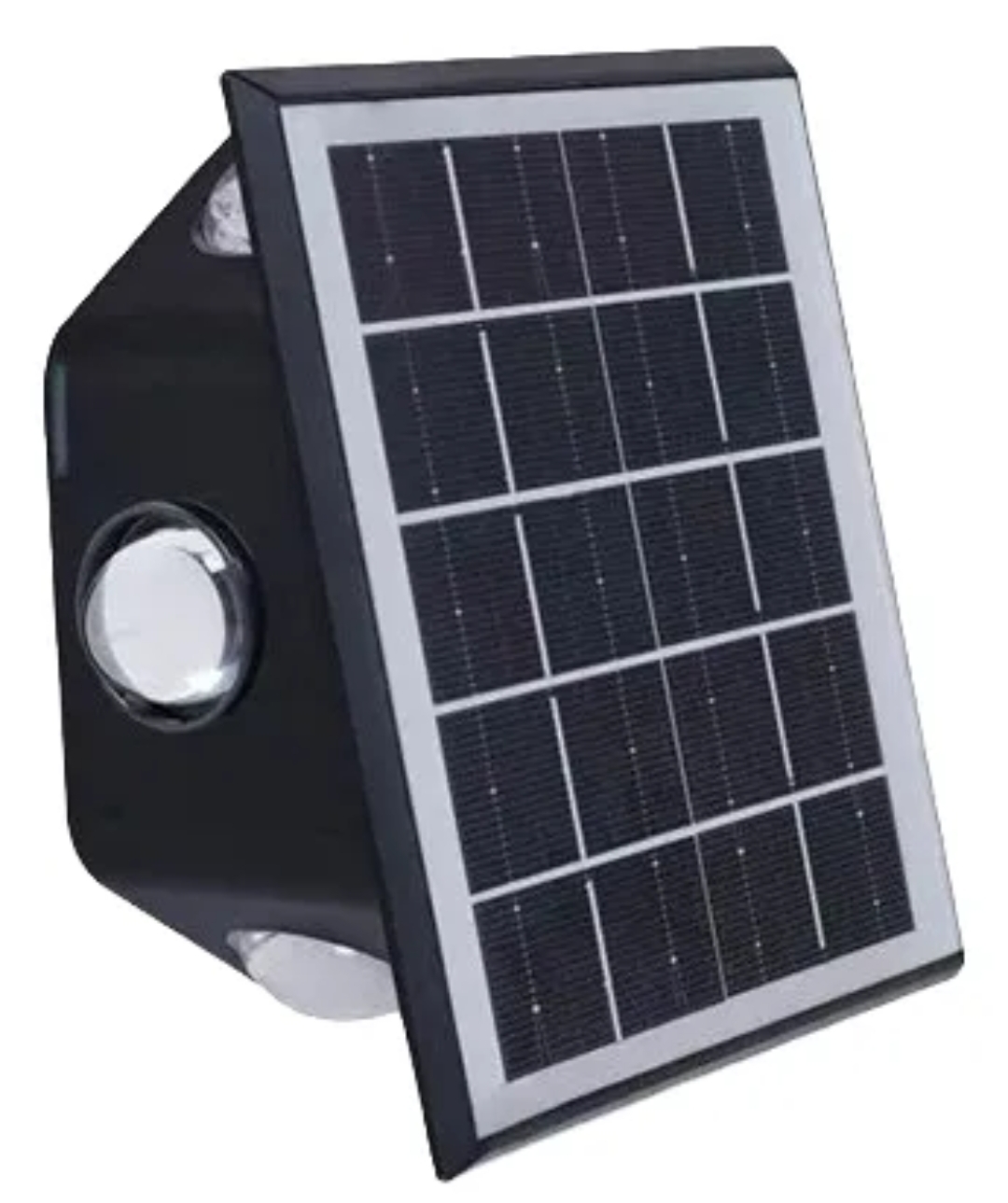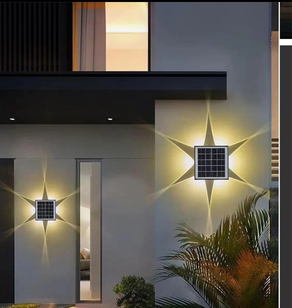 Este apliqué solar cuenta con un panel solar de alta eficiencia que capta la energía del sol durante el día 🌤️ y la transforma en iluminación LED automática por la noche 🌙. Su diseño proyecta la luz hacia arriba y hacia abajo, creando un efecto visual sofisticado ideal para realzar fachadas, muros y jardines.
