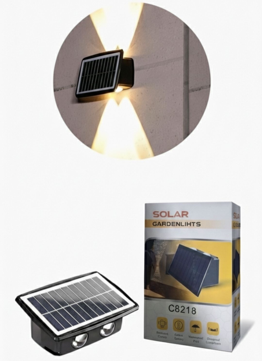 Ilumina tus espacios exteriores de forma elegante y eficiente con este foco solar de pared 💡. Su diseño moderno proyecta luz hacia arriba y hacia abajo, creando un efecto decorativo ideal para jardines, fachadas, patios y pasillos 🏡🌿.