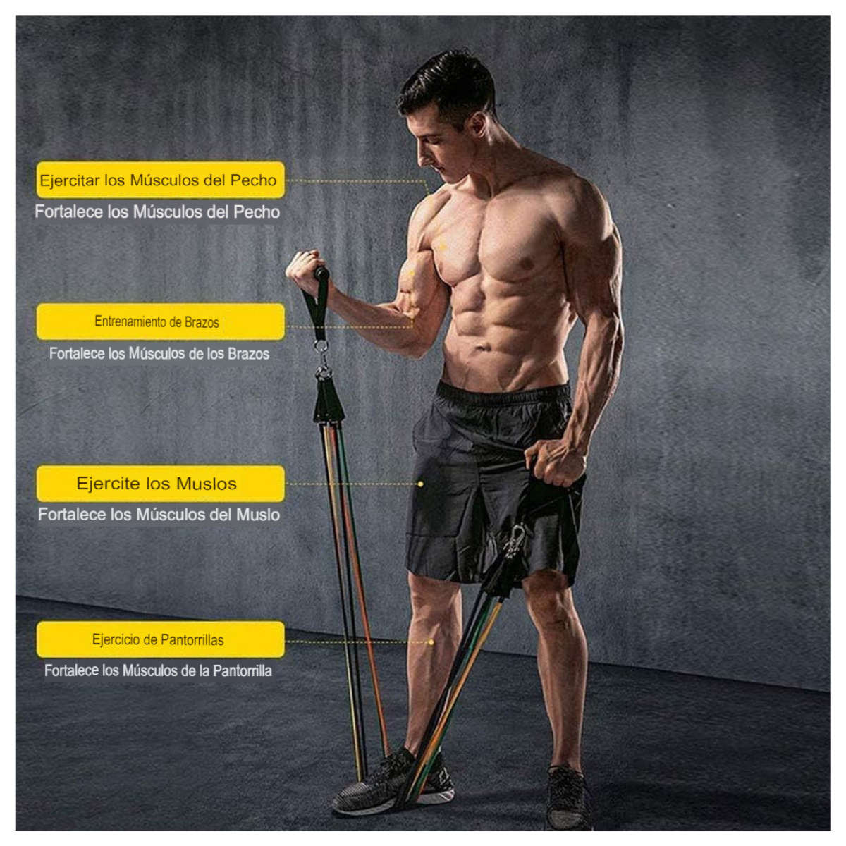 ¡Eleva tu entrenamiento al siguiente nivel con nuestra Bandas de Ejercicio para Resistencia! Alcanza tus objetivos de acondicionamiento físico con nuestro set de bandas elásticas de alta calidad. Diseñadas para ofrecerte una experiencia de entrenamiento personalizable, estas bandas te permiten fortalecer como tonificar tus músculos en cualquier lugar, en cualquier momento.
