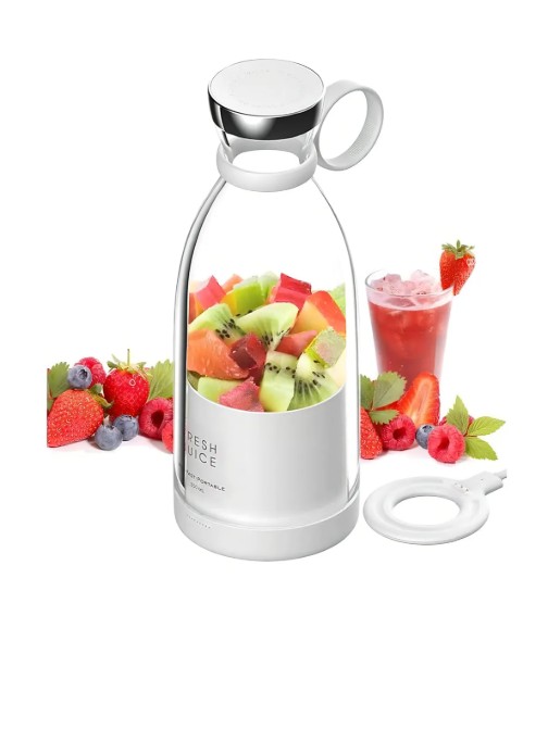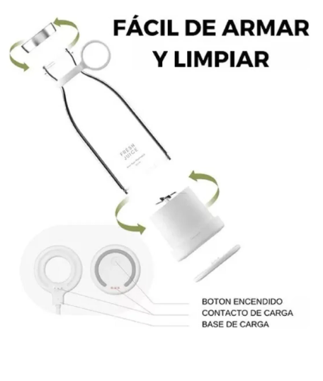 Licuadora portátil, ideal para colaciones, licuados o meriendas nutritivas. Material de la jarra: Polipropileno. Cuenta con base antideslizante y cuchilla de acer inoxidable y además removible.