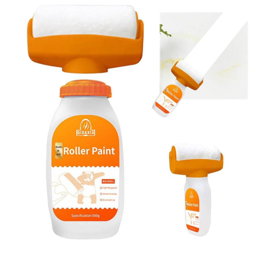 Recupera el aspecto original de tus paredes en minutos con esta brocha enrollable 2 en 1 con pasta reparadora, diseñada para solucionar de forma práctica y rápida grietas, manchas, agujeros pequeños o marcas de humedad sin necesidad de herramientas adicionales.