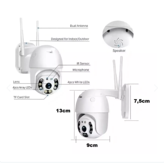 Ya no tiene que preocuparse por la vigilancia de su hogar o negocio. Con la cámara de seguridad Lehmox Speed Dome wifi con 2 antenas tendrás un mayor control sobre los espacios y seguridad las 24 horas. Un modelo a la medida de tus necesidades Esta cámara IP te permitirá comprobar en tiempo real lo que ocurre en el lugar que quieres proteger, ya que está especialmente diseñada para enviar señales en tiempo real a través de Internet. Tiene una resolución de 2 MP, por lo que podrás mantener un control claro y preciso sobre tus espacios. Además, estos vídeos se graban a una velocidad máxima de 20 fotogramas por segundo, por lo que se consigue una mayor fluidez en la imagen.