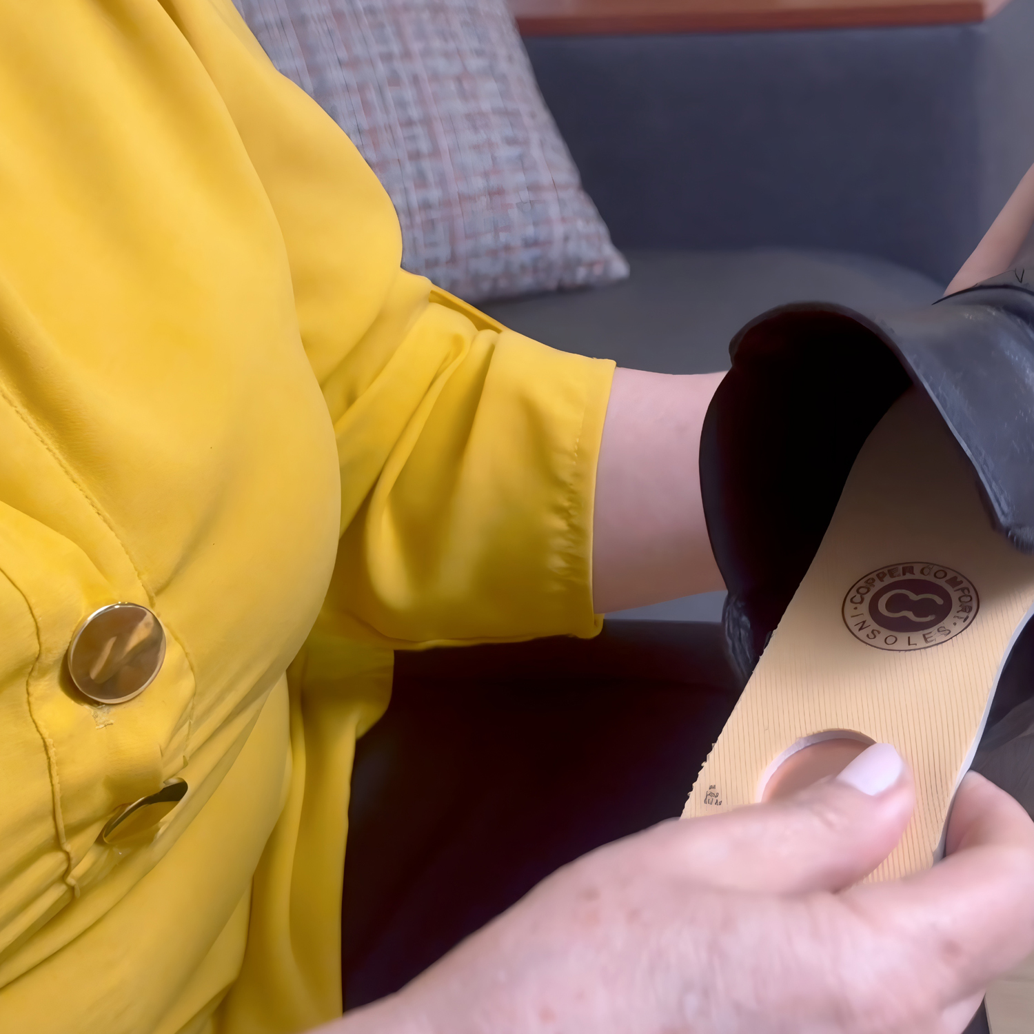 Si sufres de dolor en los pies, hinchazón en las piernas o tensión en la espalda, Copper Comfort es la solución perfecta. Estas innovadoras plantillas combinan espuma viscoelástica de alta calidad con la increíble propiedad del cobre, brindando alivio inmediato y mejorando tu bienestar general. Su diseño único incorpora dos discos de cobre expuesto, que potencian sus beneficios y maximizan la absorción de sus propiedades naturales. Con cada paso, sentirás una comodidad incomparable y una mayor ligereza en tu día a día.