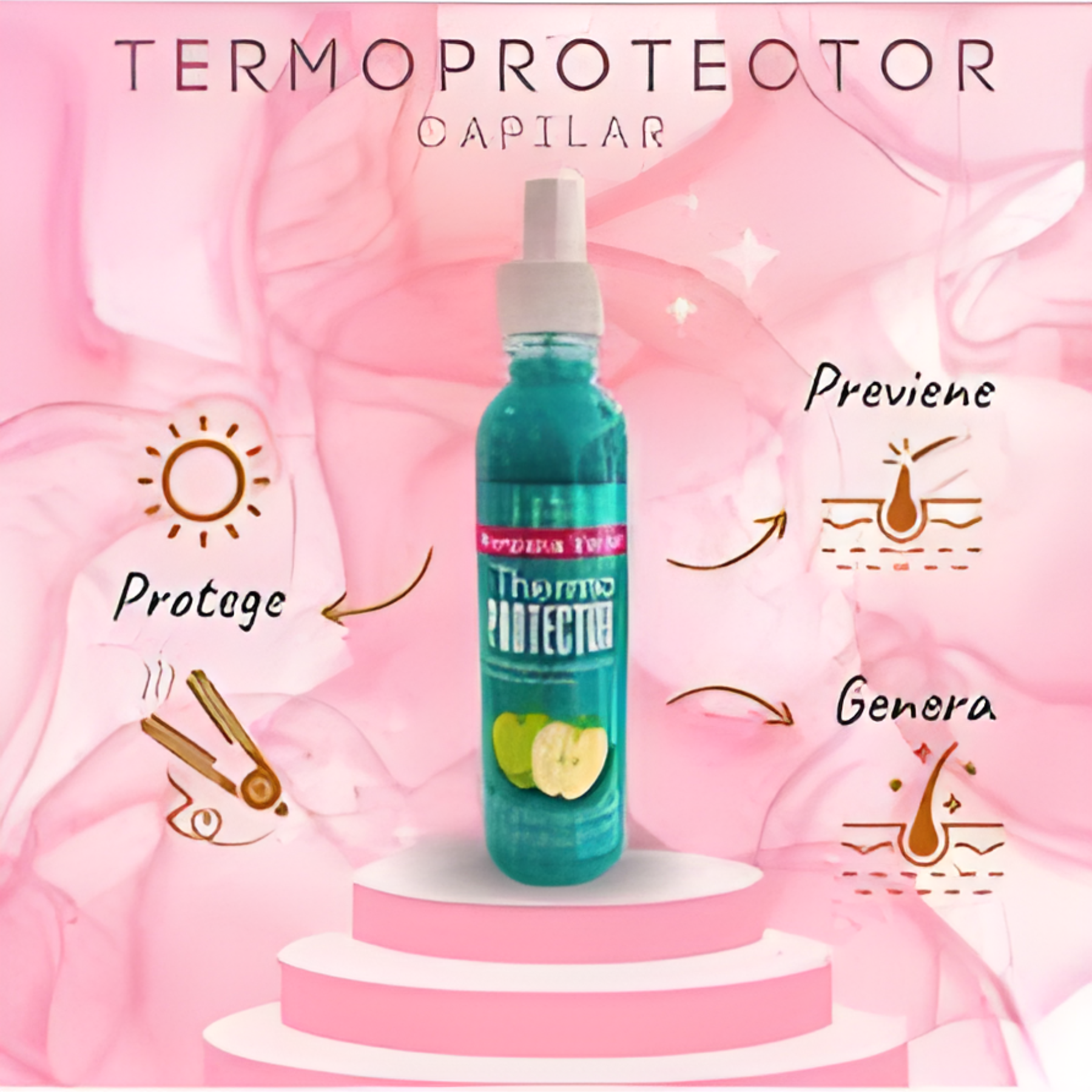 La Crema Termoprotector Manzana Verde Copacabana (250 ml) es un tratamiento capilar diseñado para proteger el cabello del calor generado por planchas, secadores y rizadores. Su fórmula enriquecida con extracto de manzana verde aporta hidratación, brillo y suavidad, evitando el daño térmico y el quiebre de la fibra capilar. Además, ayuda a controlar el frizz, dejando el cabello con un aroma fresco y una apariencia saludable.