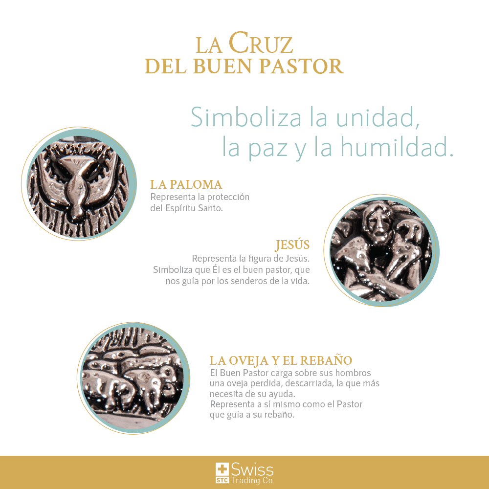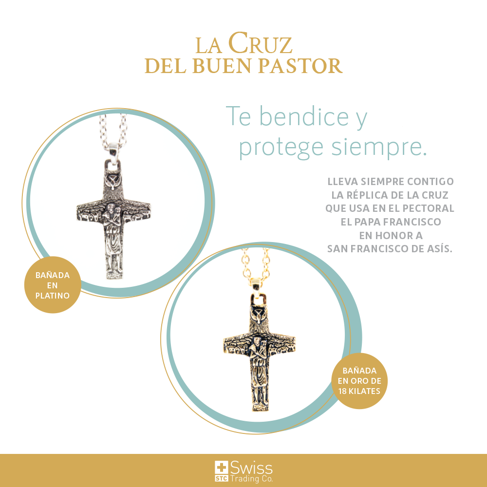 La Cruz del Buen Pastor simboliza la unidad, la paz y la humildad. El Papa Francisco la eligió en honor a San Francisco de Asís y es la cruz que guió sus pasos, según sus propias palabras. Es el regalo perfecto para proteger a quien tú tanto quieres o para esa persona que perdió un ser querido o está pasando por un momento difícil en su vida. Ideal también para un bebé que será bautizado o para quien hará la primera comunión. El poder de tener a Jesús contigo. Como sabes, la cruz es la insignia que utilizan los obispos y los presbíteros como una señal de su cargo y su ministerio como pastores de la Iglesia católica y que tú como creyente llevas como símbolo de tu fe.