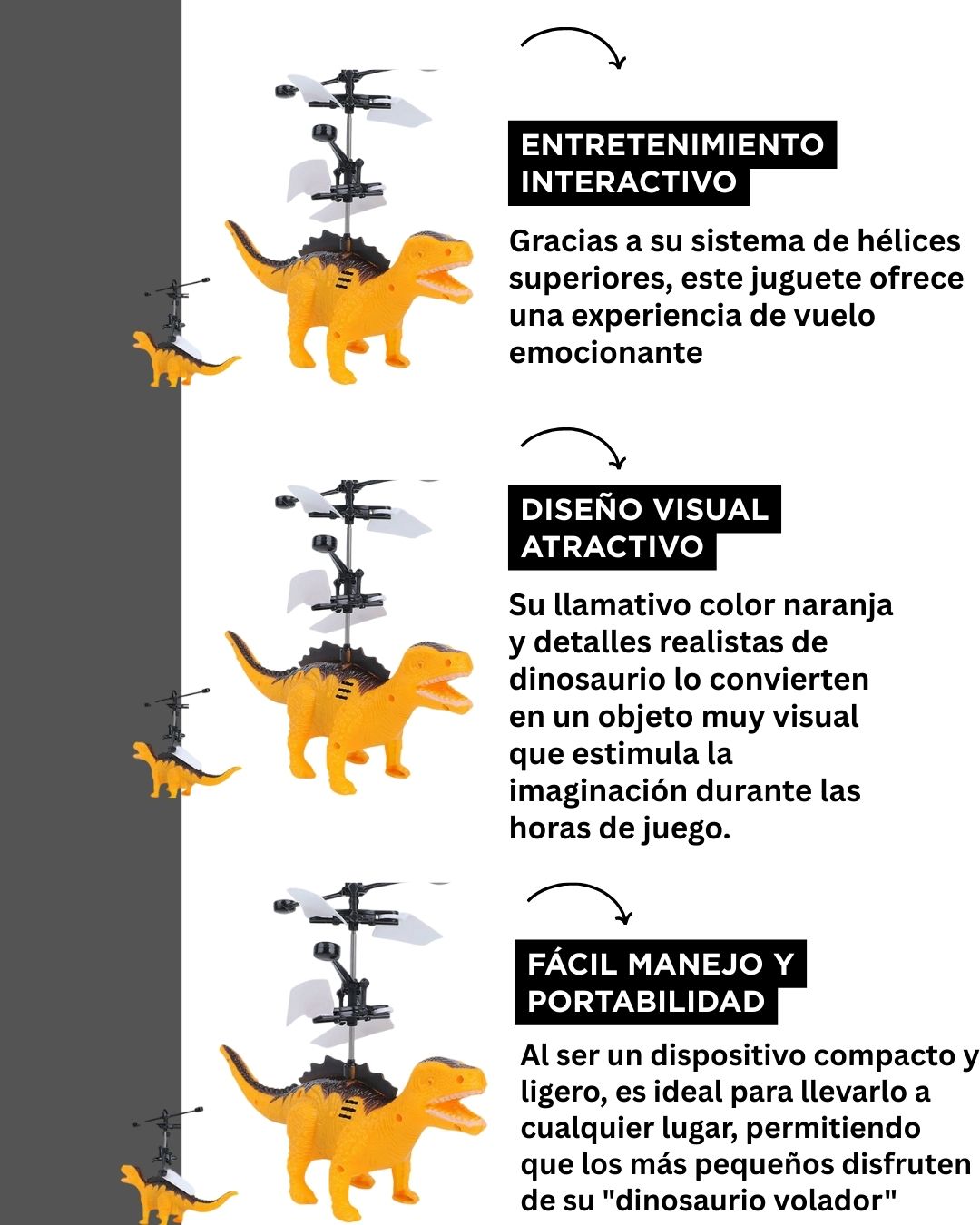 El juguete volador de dinosaurio está hecho de material de alta calidad, con un diseño único de detección de infrarrojos y seguridad, y puede ser un regalo deseable para los niños.