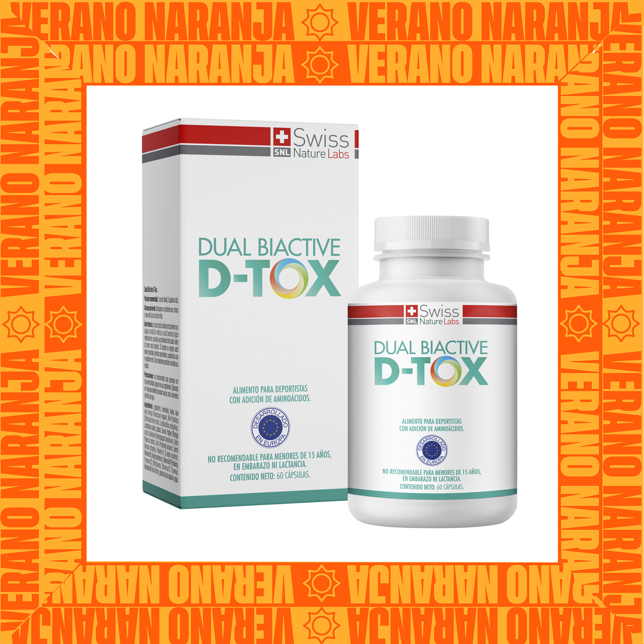 Una fórmula avanzada de origen natural que combina probióticos, fibra, aloe y vitaminas esenciales para favorecer la desintoxicación del organismo. Dual Biactive D-tox ayuda a limpiar el colon, equilibrar el sistema digestivo y fortalecer el sistema inmunológico, ofreciendo una sensación de bienestar integral y renovada energía.