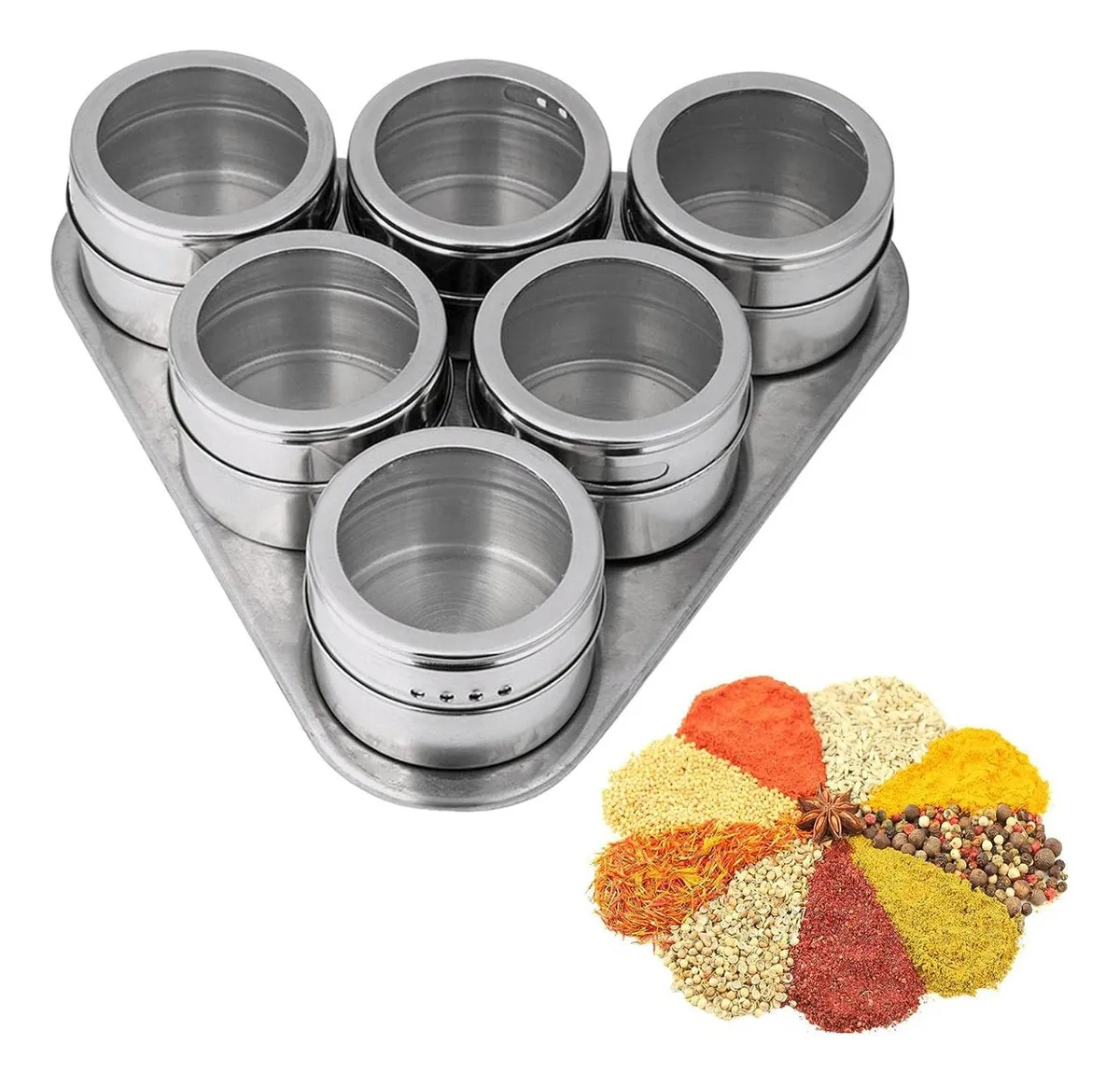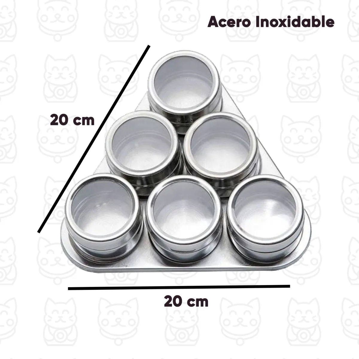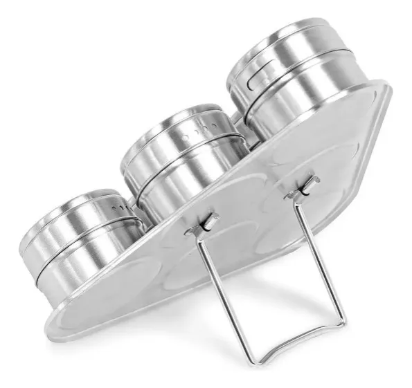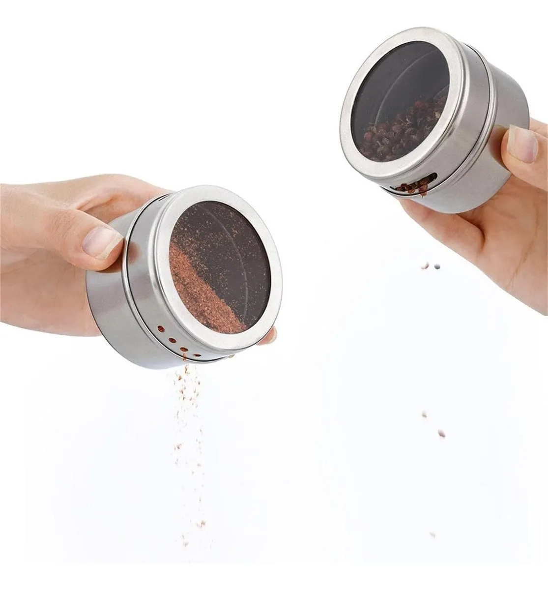 Este set de pimentero condimentero especiero magnético incluye 6 frascos de color acero. Es ideal para mantener tus especias organizadas y a mano mientras cocinas. Los frascos tienen un diseño moderno y elegante que combina con cualquier decoración de cocina. Además, son magnéticos, por lo que puedes adherirlos a cualquier superficie metálica para ahorrar espacio en la encimera. Cada frasco tiene una tapa de acero inoxidable con dos opciones de dispensación: agitar o verter.