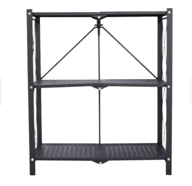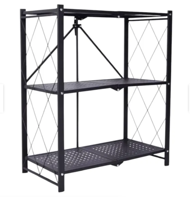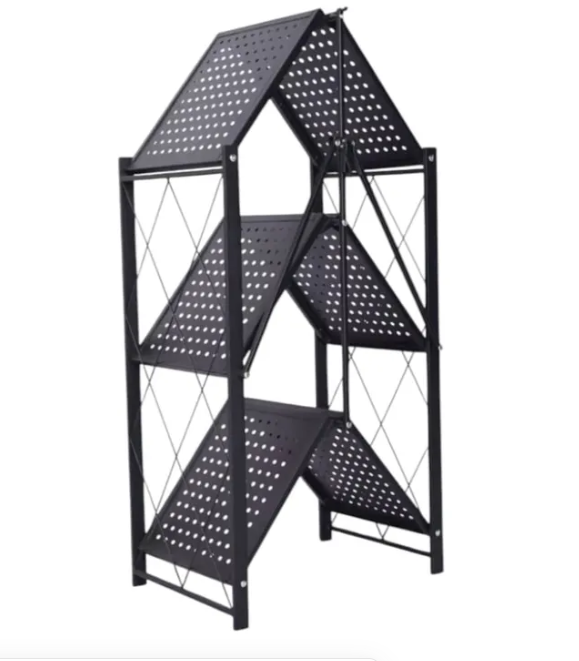 Estante metálico organizador de 3 niveles, fabricado en estructura de acero resistente con acabado en color negro. Cuenta con repisas perforadas que permiten mejor ventilación y soporte de los objetos, además de barras traseras en forma de cruz para mayor estabilidad. Ideal para uso en el hogar, oficina, garaje o negocio, ya que ofrece gran capacidad de almacenamiento y organización en un diseño práctico, duradero y moderno.
