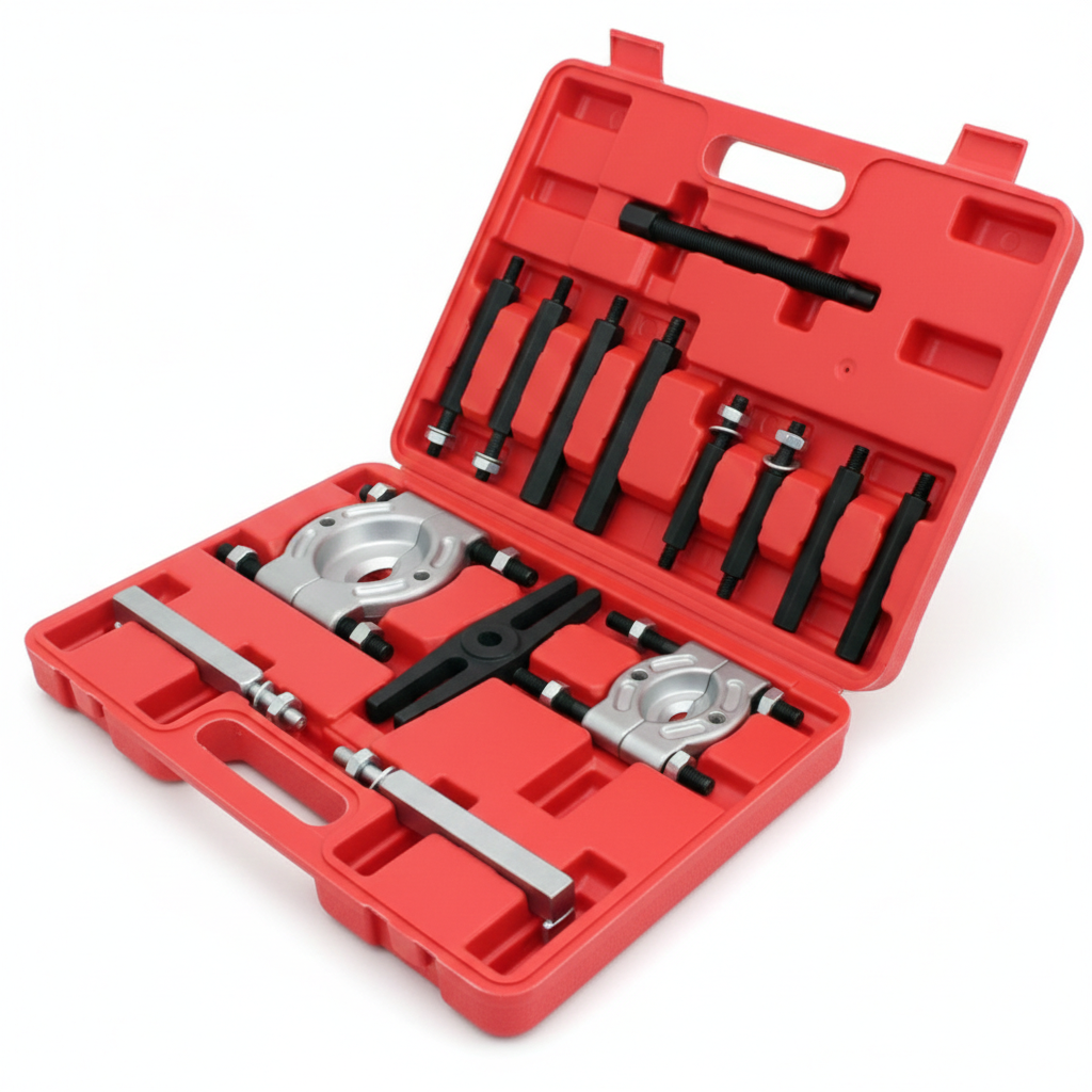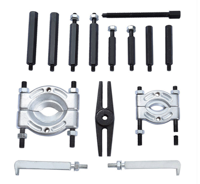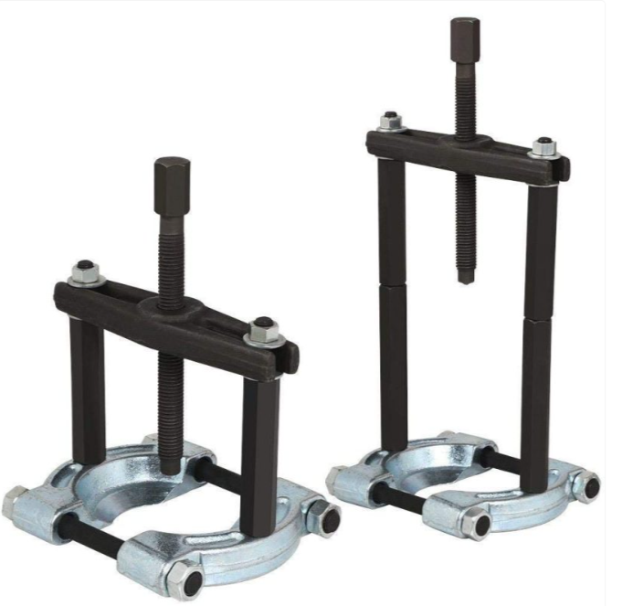 Este juego de extractor tipo guillotina de rodamientos permite al usuario, extraer y separar los rodamientos que con el paso del tiempo se han podido quedar pegados o que no dejan la opción de colocar un extractor de garras convencional.