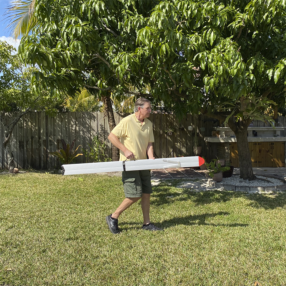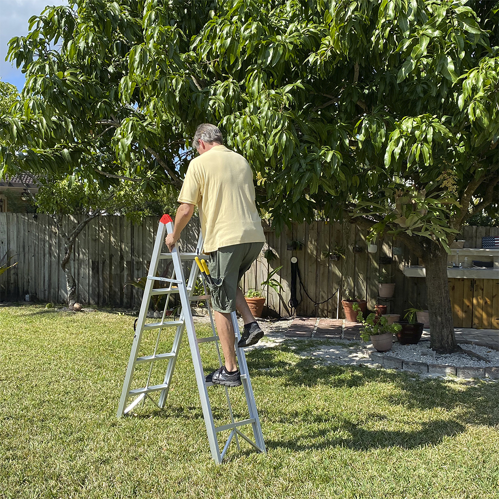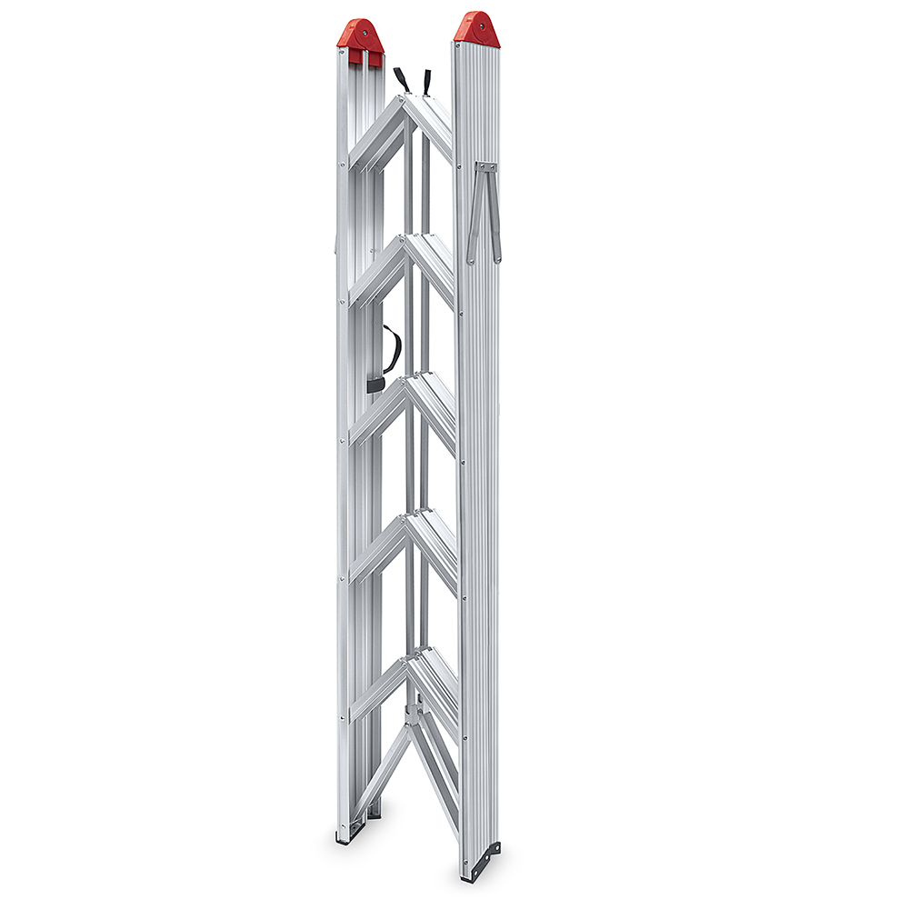 Fold-a-Step es la escalera más firme y liviana que se haya inventado. Está fabricada con aluminio 6063, utilizado para fabricar aviones y naves espaciales, y jamás se oxidará. Pruebas de resistencia demostraron que Fold-a-Step es tan fuerte que soportó el peso hasta de 4 personas adultas. Además, es tan compacta que en el espacio de una escalera tradicional entran 6 Fold-a-Step plegadas.