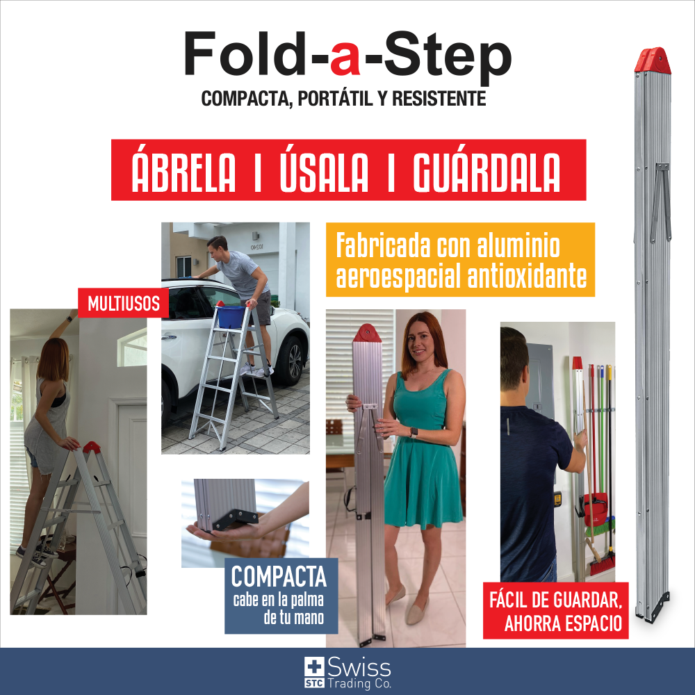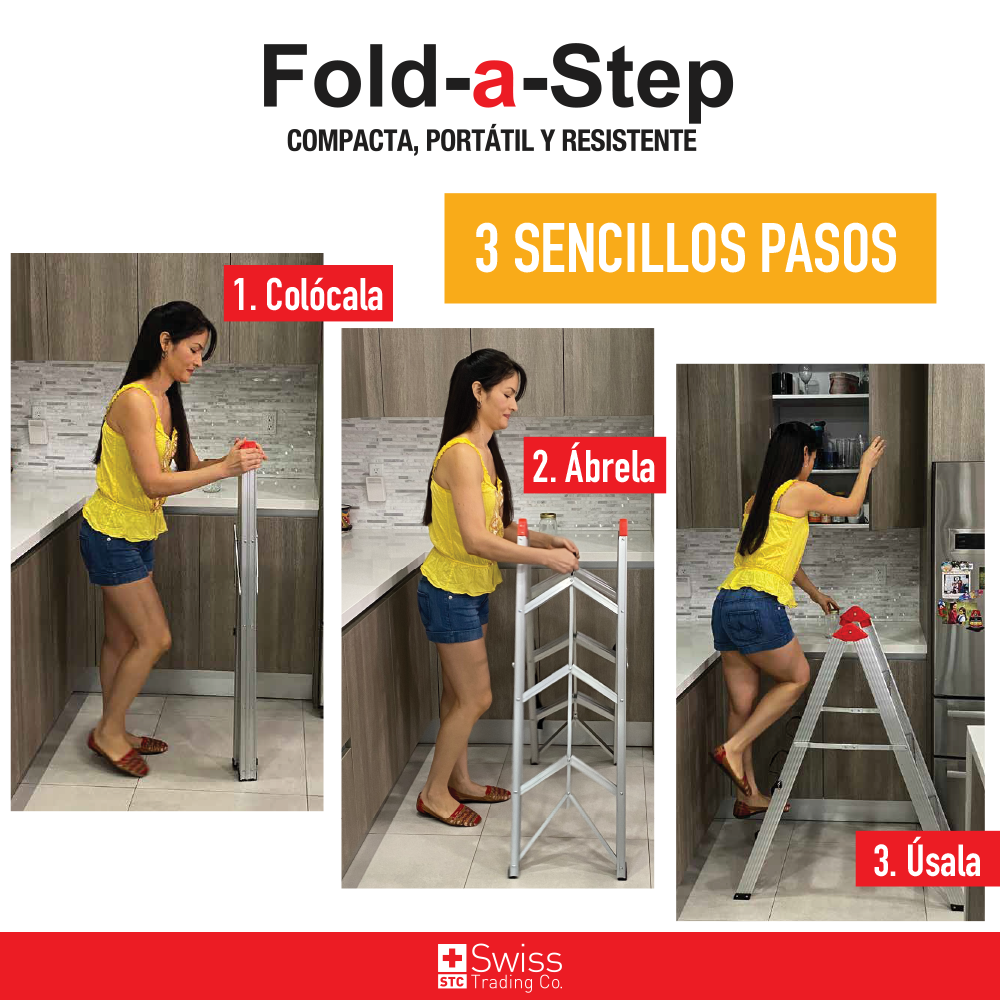 Nunca más te subas a un banco o silla para alcanzar algo. Pide tu Fold-a-Step ahora!