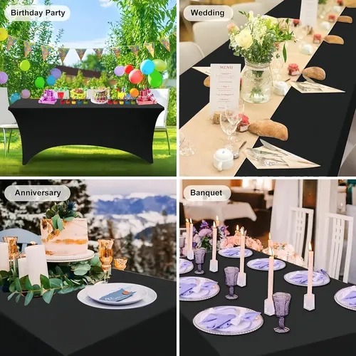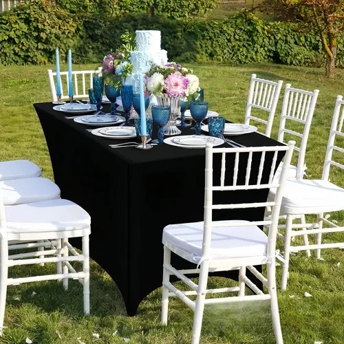 Fácil instalación: Los bolsillos elásticos en las patas permiten una instalación rápida y sencilla, asegurando que la funda se mantenga segura durante todo el evento.