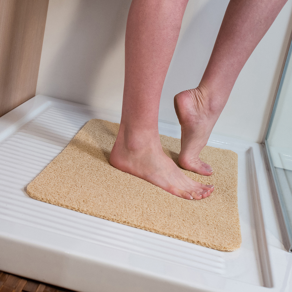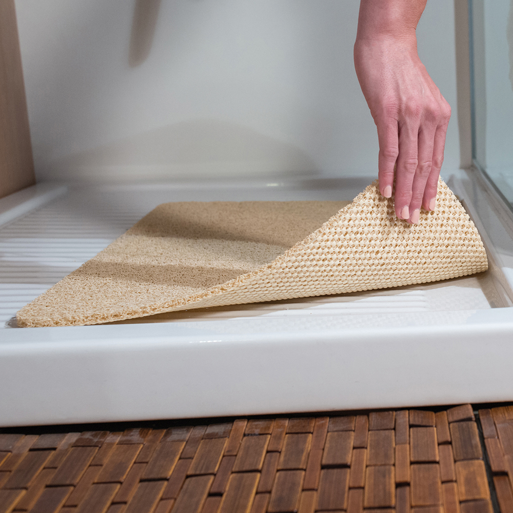Su base antideslizante, distribuida uniformemente en la parte posterior, garantiza un agarre máximo tanto en superficies mojadas.