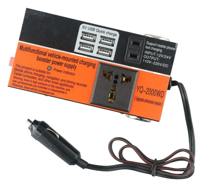 El Inversor De Voltaje 150w 12-220v Convertidor Multipropósito YQ-2000WD es la solución ideal para quienes necesitan convertir corriente continua a corriente alterna de manera eficiente y confiable. Con una capacidad máxima de 200 W, este versátil inversor es perfecto para alimentar diversos dispositivos electrónicos en situaciones donde el suministro de energía sea limitado.