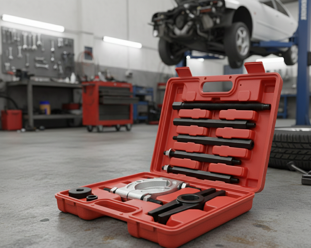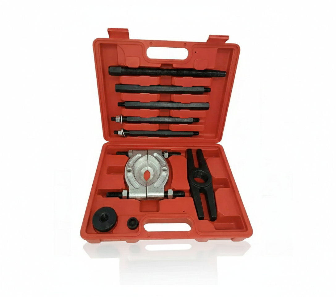 Este kit de extracción de grado industrial ha sido diseñado para enfrentar los desafíos más exigentes en el desmontaje de componentes mecánicos de gran tamaño. Con una capacidad de carga superior de 7 toneladas, este conjunto ofrece la potencia y el alcance necesarios para trabajar con rodamientos, poleas y engranajes en vehículos de carga, maquinaria agrícola y equipos industriales pesados.