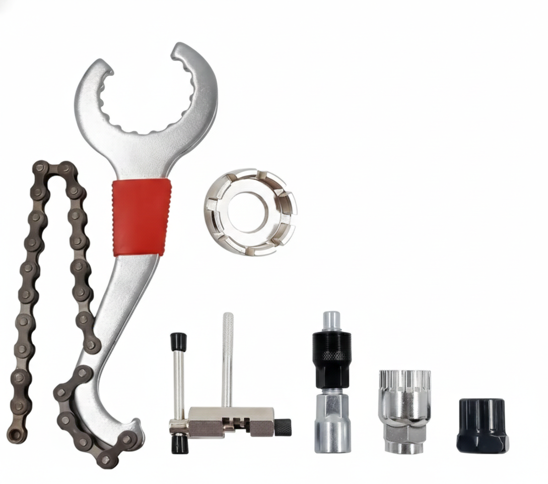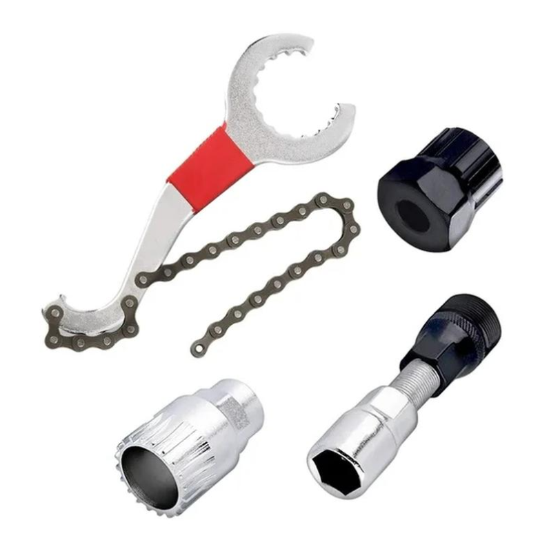Multi-Function Bike Repair Tool Kits: Las herramientas de bicicleta incluyen 1* Herramienta de extracción de casete con látigo de cadena, 1* Extractor de biela, 1* Rompedor de cadena de bicicleta, 1* Herramienta de extracción de rueda libre, 1* Extractor de pedalier, 1* Llave de radios y 1* Instrucciones del producto. Se adapta a la mayoría de las marcas de pedalier de bicicleta. Con todas las herramientas de reparación de bicicletas necesarias, es una herramienta de extracción de manivela imprescindible para montar al aire libre.