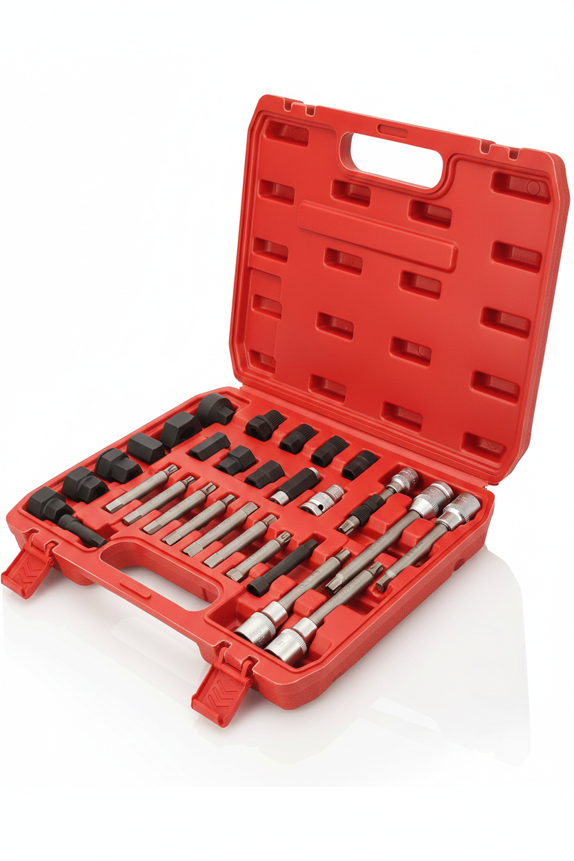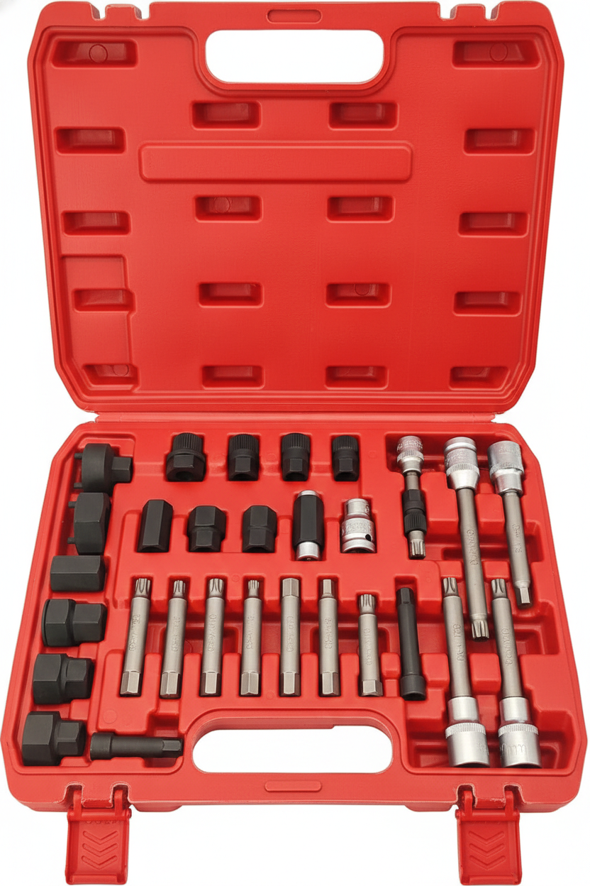 El Kit Juego Removedor de Poleas de 30 piezas es la solución profesional definitiva para el mantenimiento de sistemas de carga modernos. Este set ha sido diseñado para abordar la extracción e instalación de poleas de alternador de giro libre (OAP) y poleas desacopladoras (OAD) con una precisión de equipo original (OEM).