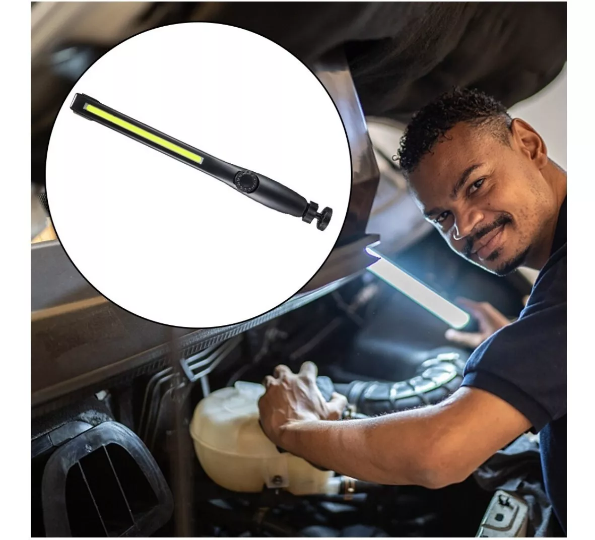 ¡Esta lámpara Led es una herramienta ideal para mecánicos! Esta lámpara contiene un potente chip Cob Led recargable con los últimos avances tecnológicos. La lámpara también incluye una base de imán para la estabilidad, aportando una iluminación intenso y uniforme. ¡La lámpara es perfecta para el trabajo preciso y el mantenimiento!