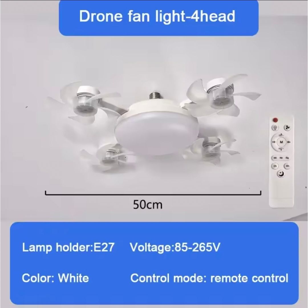Ilumina y refresca tus espacios con estilo gracias a la Luz LED para Ventilador de Techo E27 con función de atenuación y control remoto. Su innovador diseño en forma de dron combina potencia, eficiencia y modernidad, siendo perfecta para salas de estar, oficinas, estudios o dormitorios.
