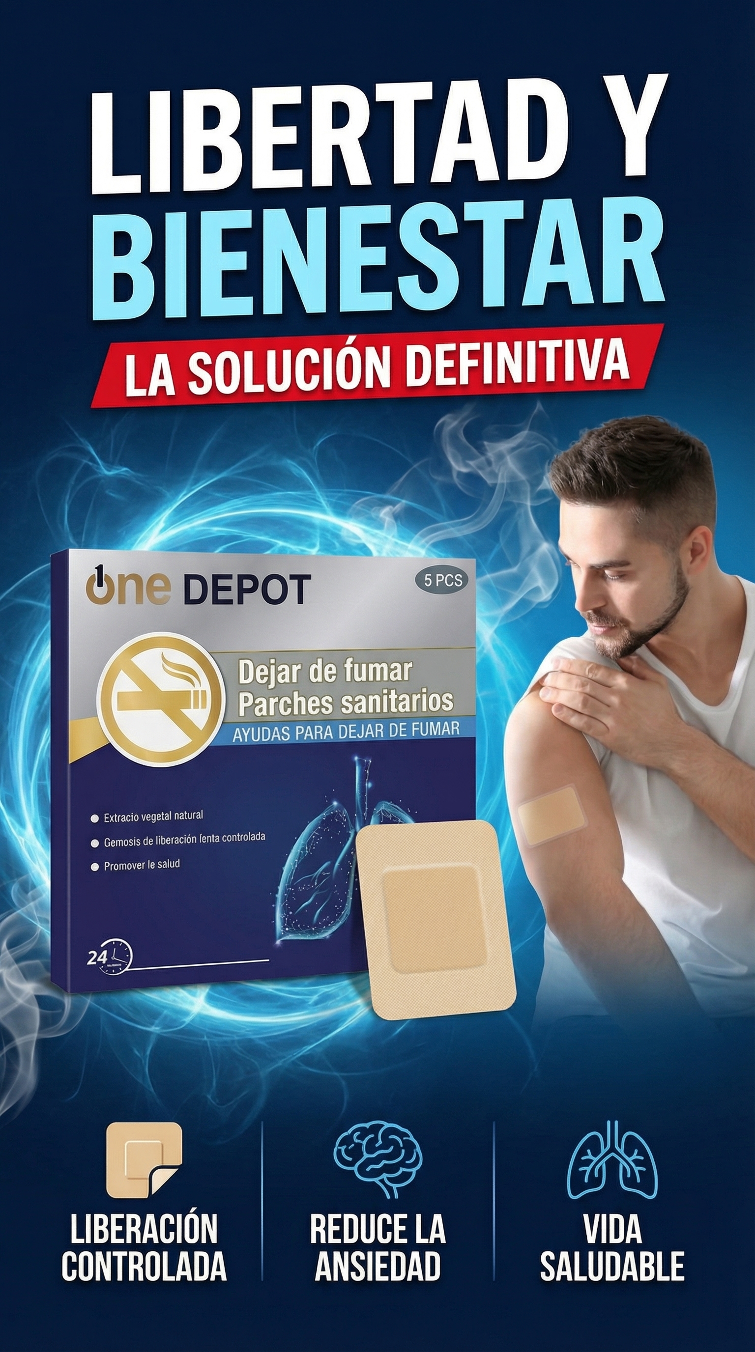 Dejar de fumar no tiene que ser un infierno. Con los Parches Sanitarios One Depot, controlas el deseo, reduces la ansiedad y recuperas tu salud — sin sufrir. Están hechos con extractos naturales y una fórmula de liberación lenta que actúa durante todo el día.