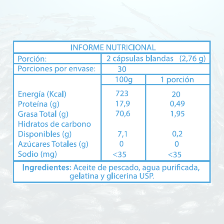Ingredientes principales: Aceite de pescado purificado, desodorizado 1.000 mg