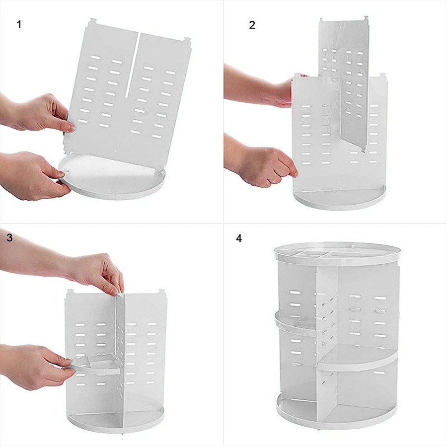 GiroGlam™️ es un organizador de maquillaje giratorio 360°, diseñado para optimizar tu rutina de belleza. Ofrece accesibilidad inmediata a tus cosméticos, gracias a sus compartimentos ajustables y su capacidad de rotar suavemente. Su elegante diseño no solo añade un toque de clase a tu espacio, sino que también te ayuda a mantener todo en orden.