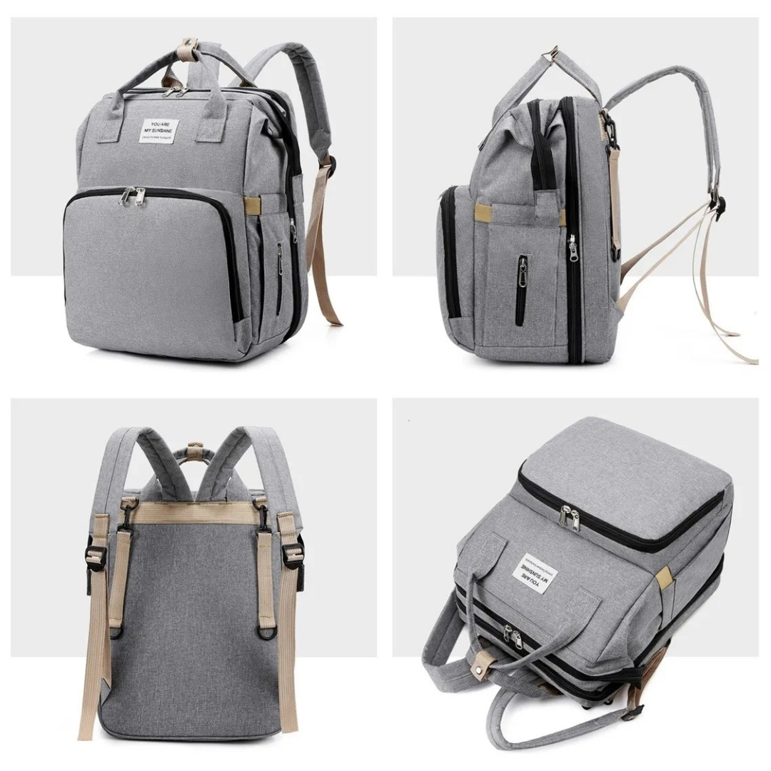 No es solo una mochila... ¡es una estación de cuidado portátil que se transforma en cuna, cambiador y organizador de viaje!