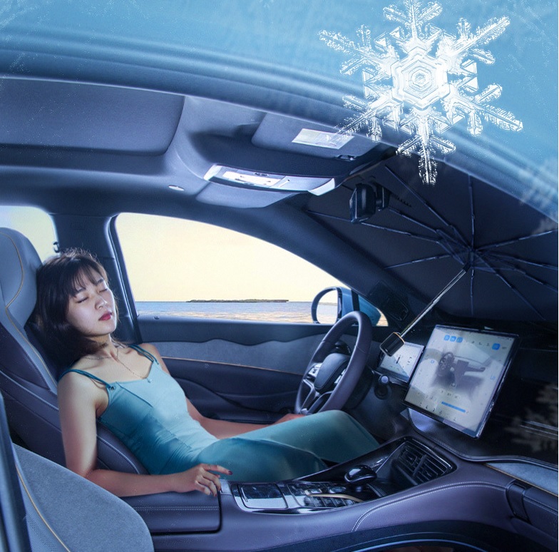 instalación rápida en segundos, cubriendo completamente el parabrisas y reflejando el sol antes de que el calor entre al vehículo.