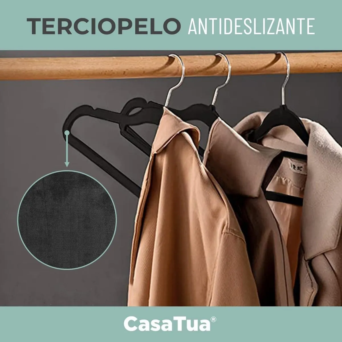 El juego de perchas de terciopelo te ayuda a organizar tu armario y a ahorrar espacio.