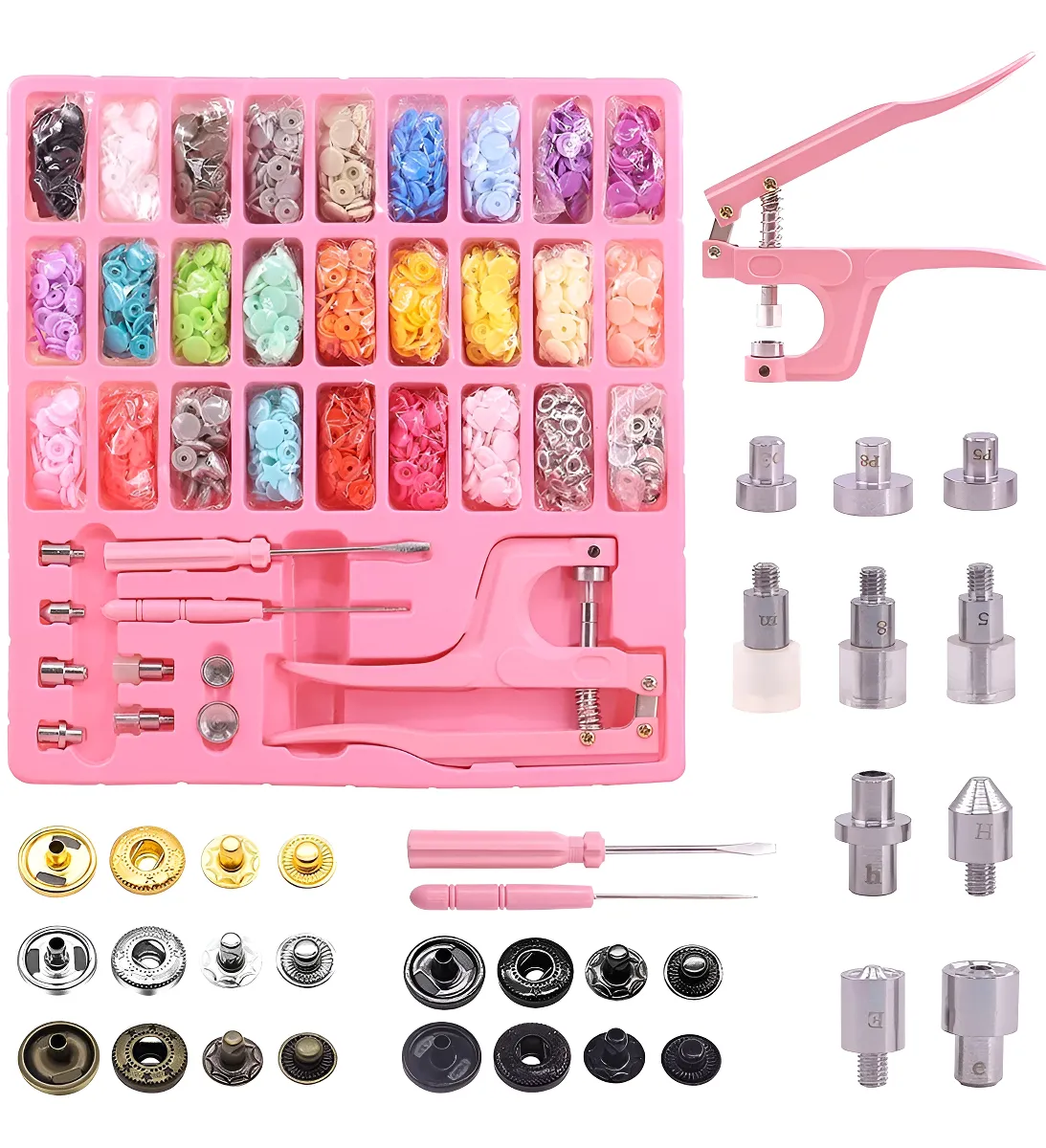 - 203 botones a presión de metal en 10 juegos