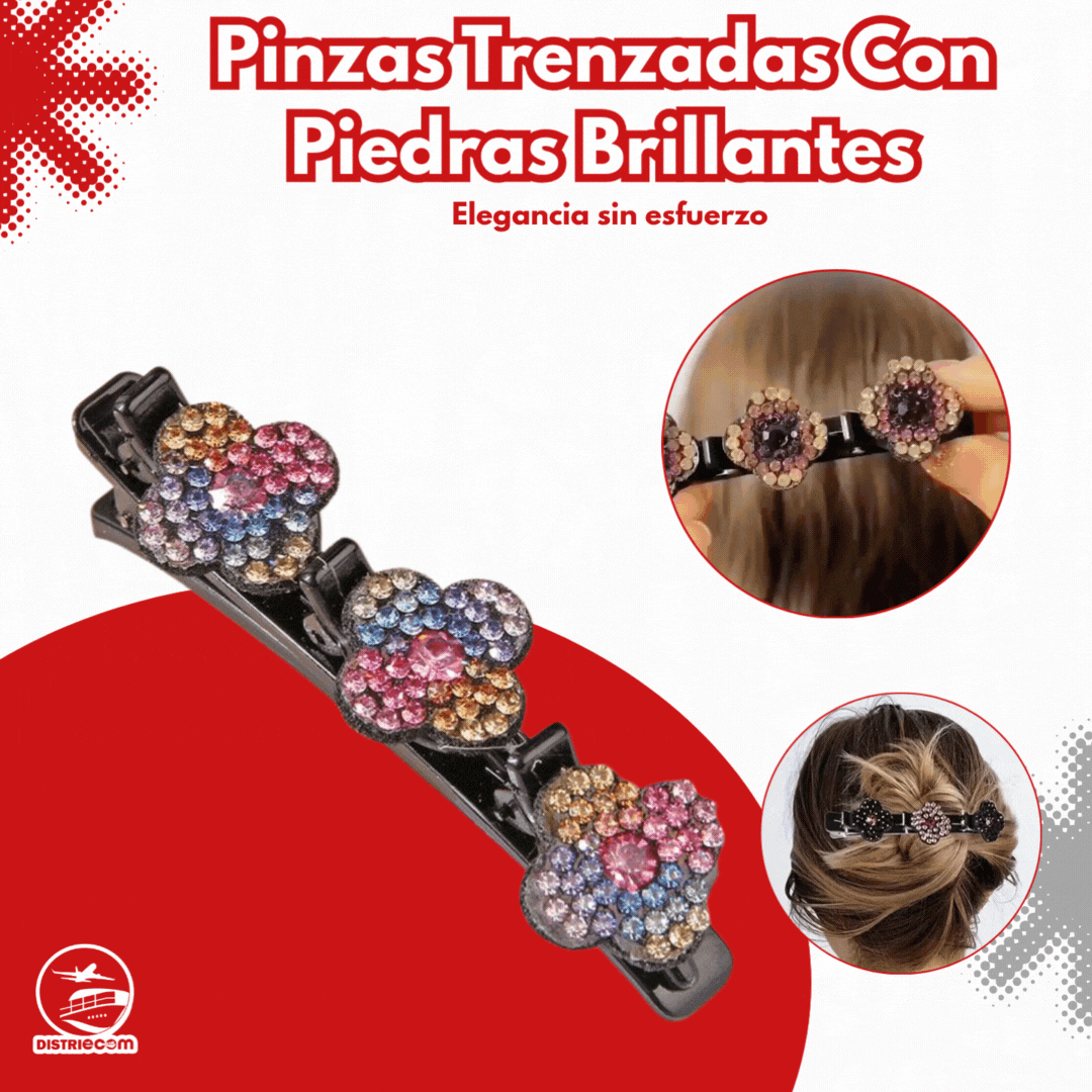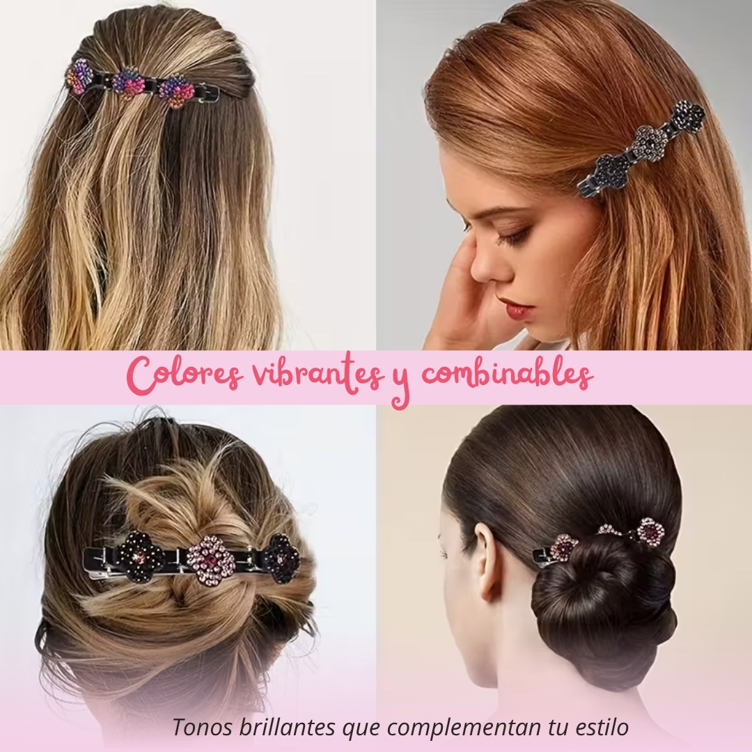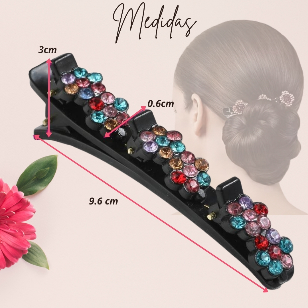 Set de 4 u 8 pinzas trenzadas con cristales brillantes, en colores variados.