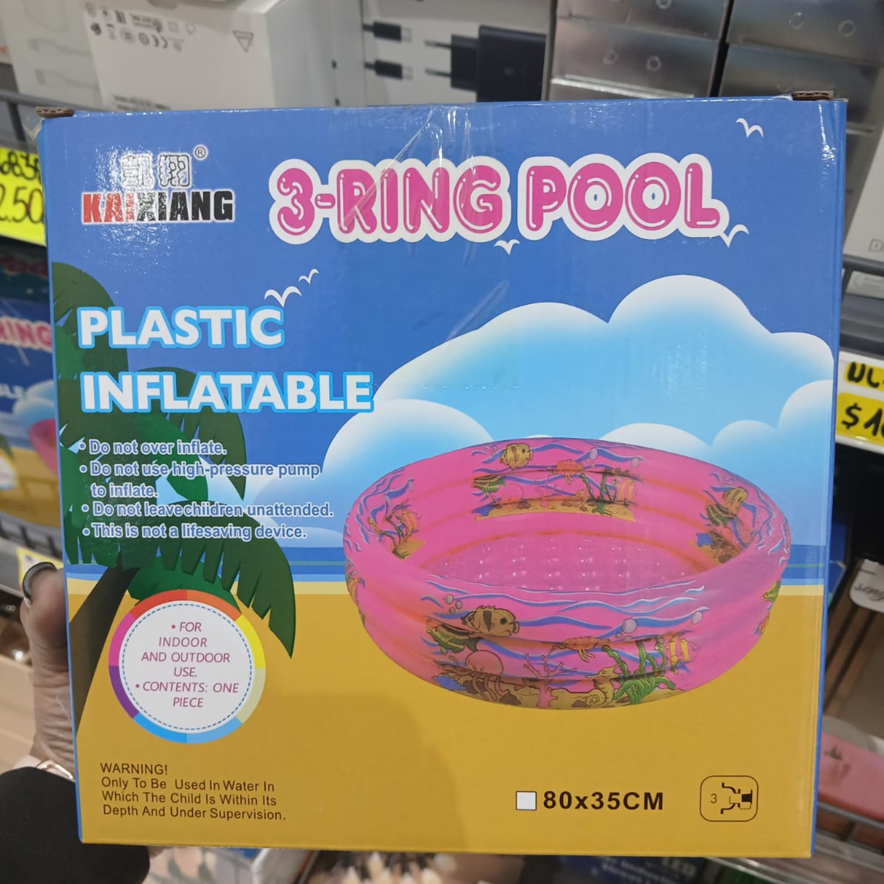 La piscina inflable plástica de 3 anillos (80x35 cm) es una pequeña piscina circular fabricada en vinilo resistente, ideal para uso doméstico y recreativo. Su diseño de tres anillos independientes ofrece mayor estabilidad y seguridad, además de facilitar el inflado y desinflado. Con un diámetro de 80 cm y una altura de 35 cm, es perfecta para niños pequeños o para refrescarse en espacios reducidos como patios, terrazas o balcones.