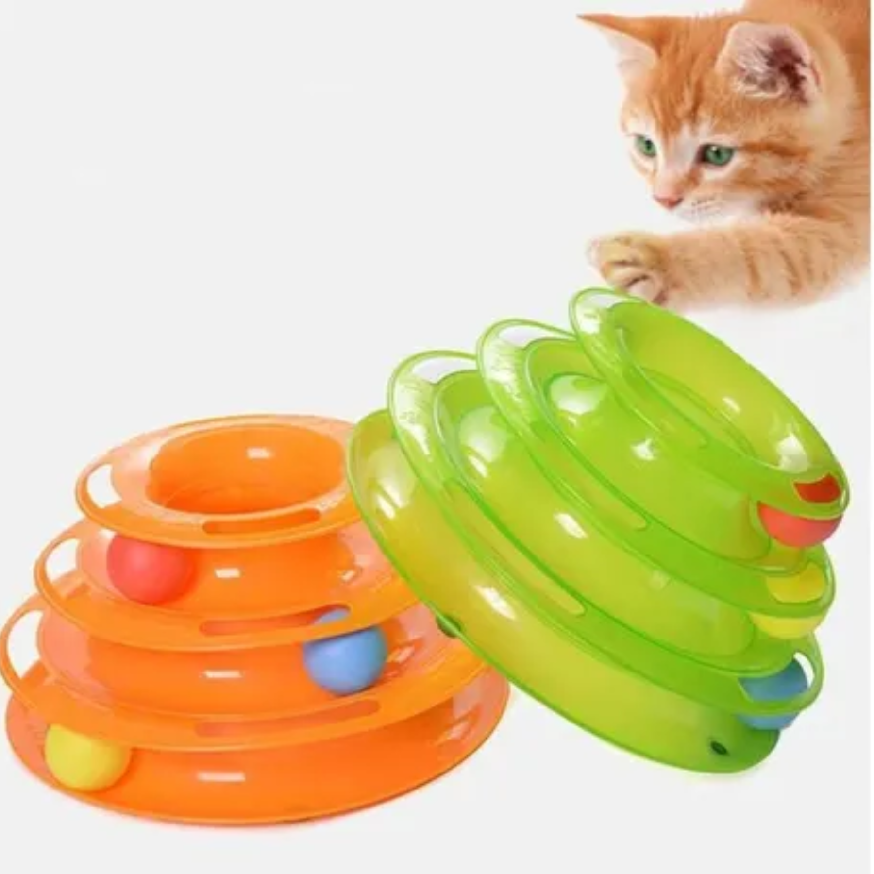 El Plato Giratorio de 3 Niveles para Gatos (25 cm) es un juguete interactivo diseñado para estimular la curiosidad, agilidad y reflejos de tu felino. Con sus tres pisos y pelotas atrapadas en pistas circulares, ofrece horas de entretenimiento seguro, evitando que se aburran o desarrollen conductas destructivas. Su tamaño compacto de 25 cm lo hace ideal para gatos de todas las edades y hogares de cualquier tamaño. Fabricado con materiales resistentes y fáciles de limpiar.