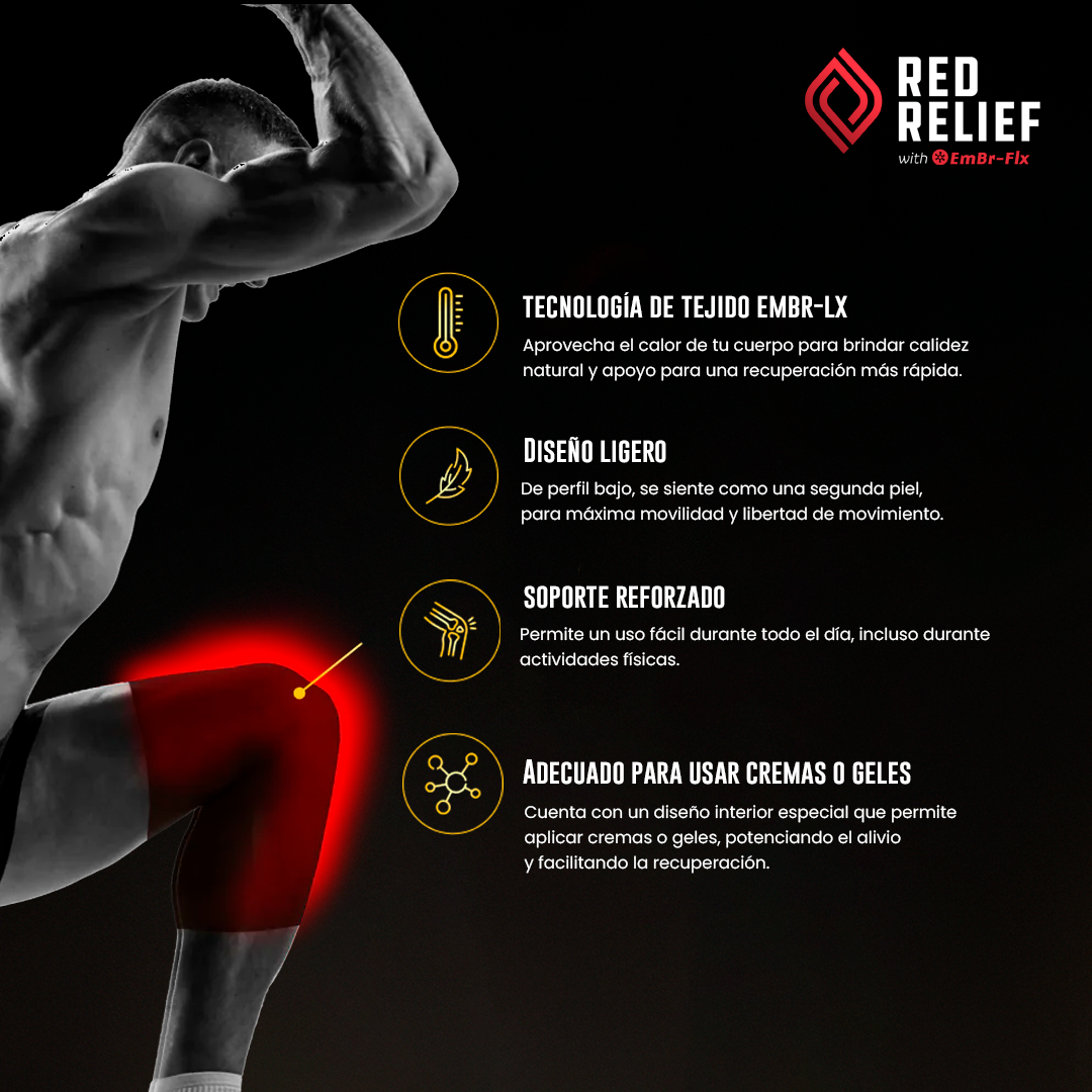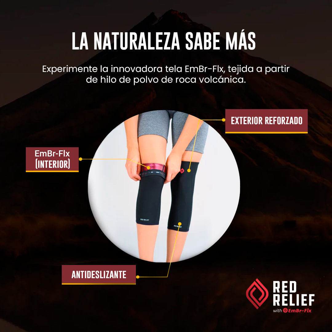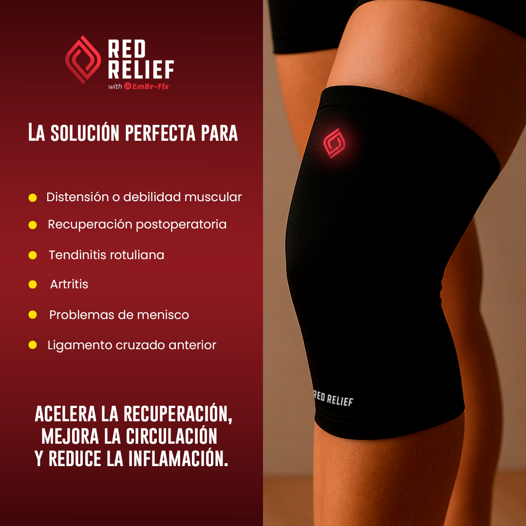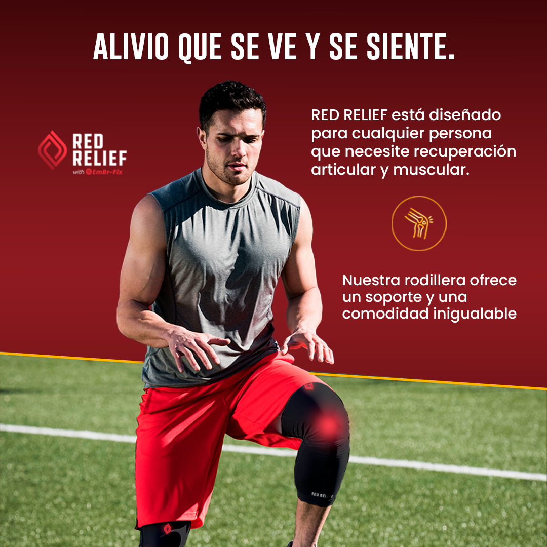 Red Relief es una innovadora rodillera de compresión termogénica que alivia el dolor de manera totalmente natural.