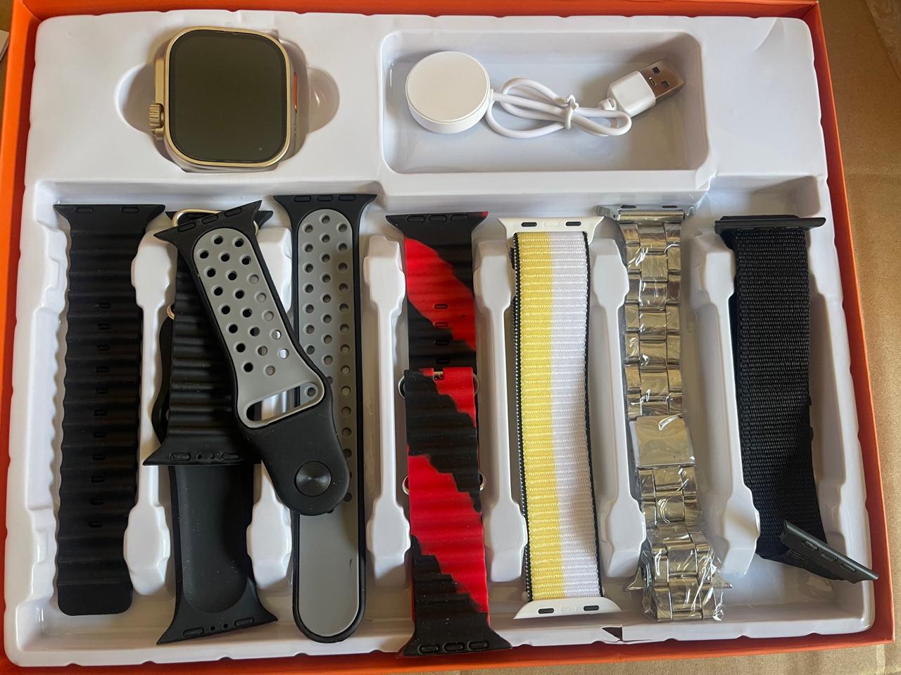 Lleva tu estilo y rendimiento al siguiente nivel con el Smartwatch ULTRA, un reloj inteligente con pantalla grande de 2.01 pulgadas, diseño robusto y funciones avanzadas para tu día a día. Este pack incluye 7 correas intercambiables, perfectas para combinar con tu look, actividad o estado de ánimo.