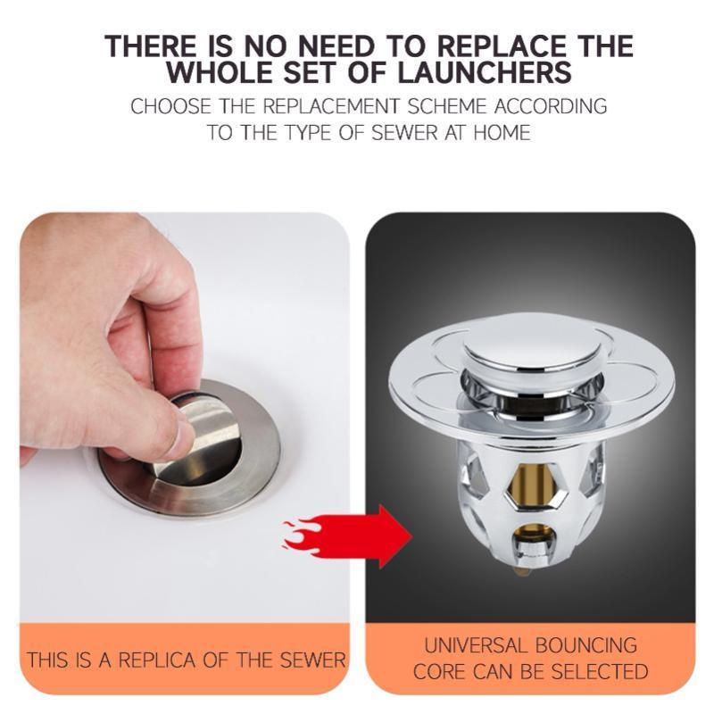 1️⃣ Material Premium: Hecho con materiales antioxidantes y antigrietas, con excelente fuerza de rebote para un sellado y drenaje rápido con un solo clic.