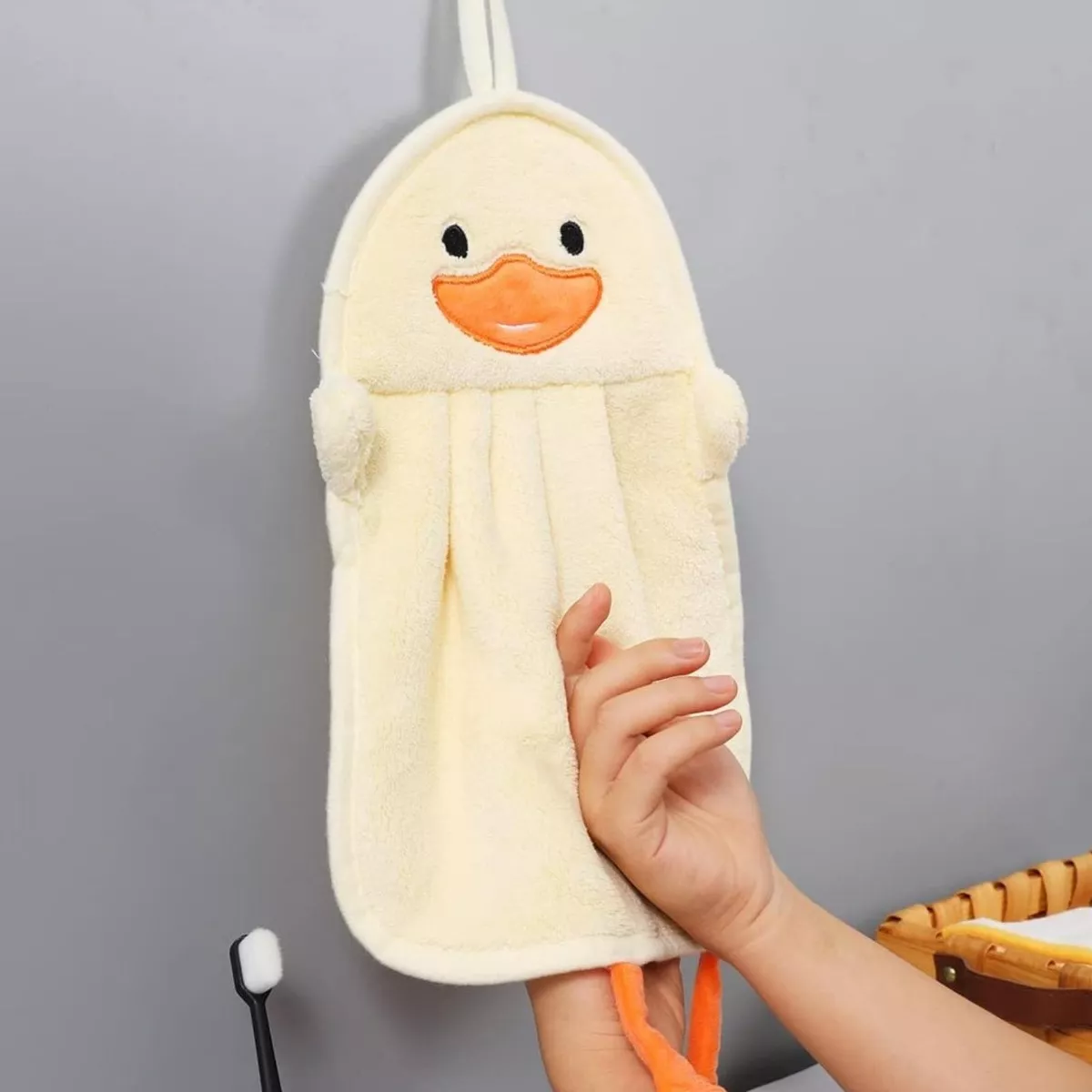 El alegre diseño de patito añade un toque de alegría a tu rutina diaria de cuidado personal. Esta toalla de manos es cómoda y práctica, y se seca en un abrir y cerrar de ojos. Basta con estrujarla con las manos para eliminar el exceso de agua, colgarla y estará lista para ser usada de nuevo.