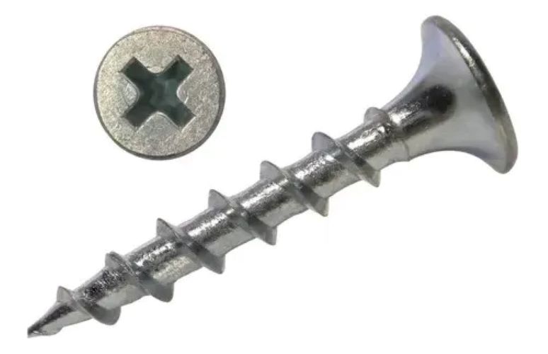 Características del Tornillo Volcanita CRS ZIncado: puede perforar no sólo volcanita sino también madera, tabiques, etc. Otra ventaja del producto es su afilada punta, tipo cincel, que disminuye el esfuerzo en la penetración. A su vez su cuerpo está formado por estrías que describen una espiral, por ello se introduce con un movimiento suave, constante y circular. Todo ello disminuye esfuerzo y tiempo en la colocación del tornillo.