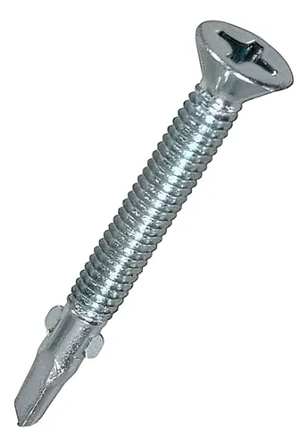 El Tornillo Autoperforante Winger Punta Broca 12-24 x 2" con Alas Desprendibles 1000 Unidades Zincado Brillante tiene cabeza plana con ranura Phillips.