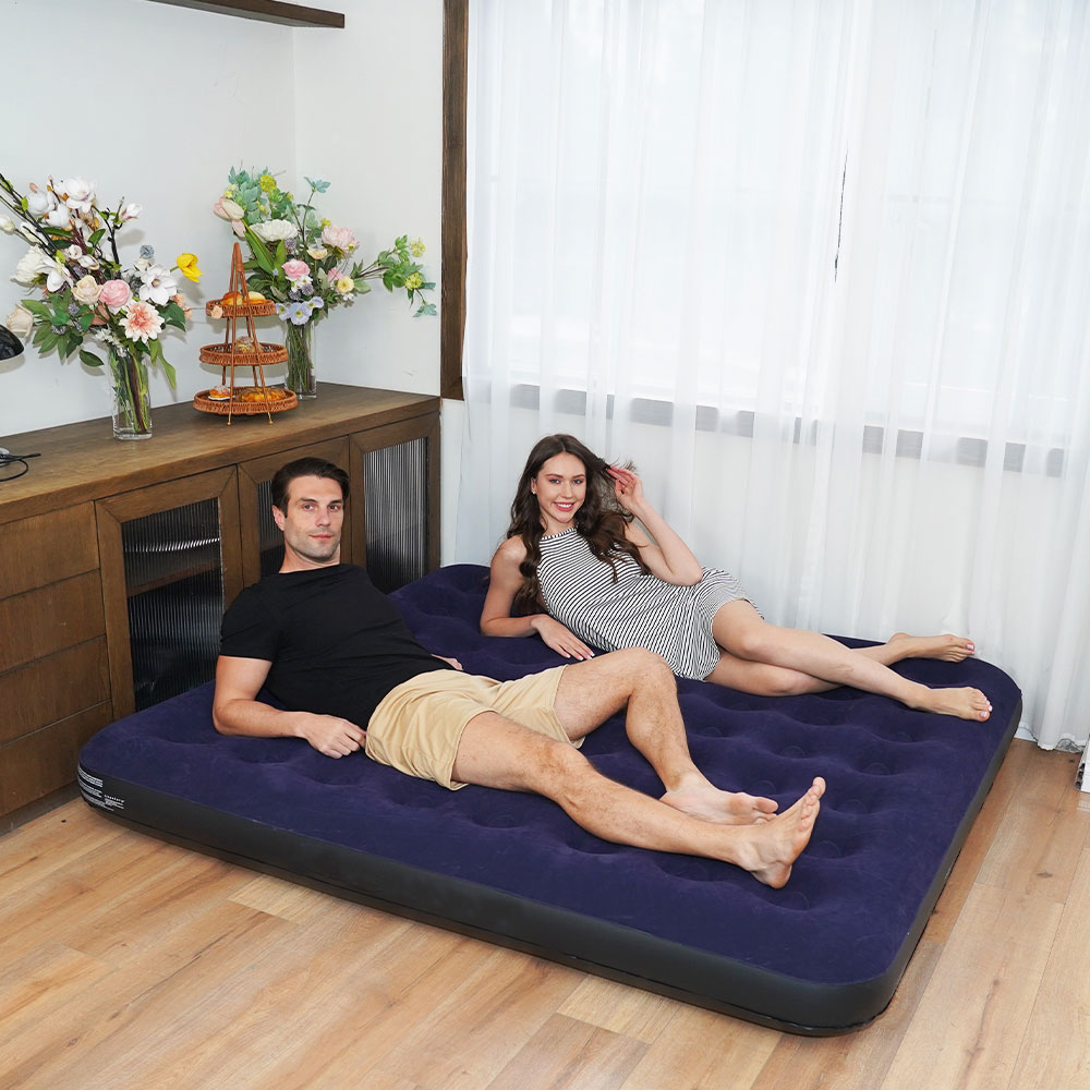 Disfruta del descanso perfecto donde quieras con este colchón inflable resistente y cómodo, ideal para el hogar, camping, playa, jardín o visitas inesperadas. Su diseño acolchado brinda un soporte uniforme y confortable, adaptándose al cuerpo para un descanso placentero tanto en interiores como exteriores.