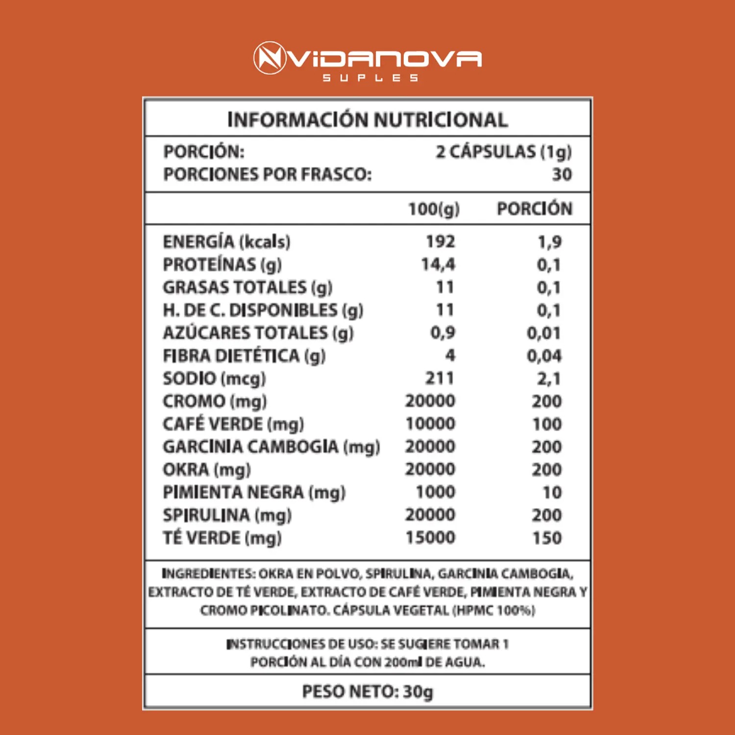 4. *Antioxidantes y antiinflamatorios*: La combinación de okra, spirulina, té verde y café verde puede proporcionar un efecto antioxidante y antiinflamatorio que puede ayudar a proteger contra enfermedades crónicas y mejorar la salud general.