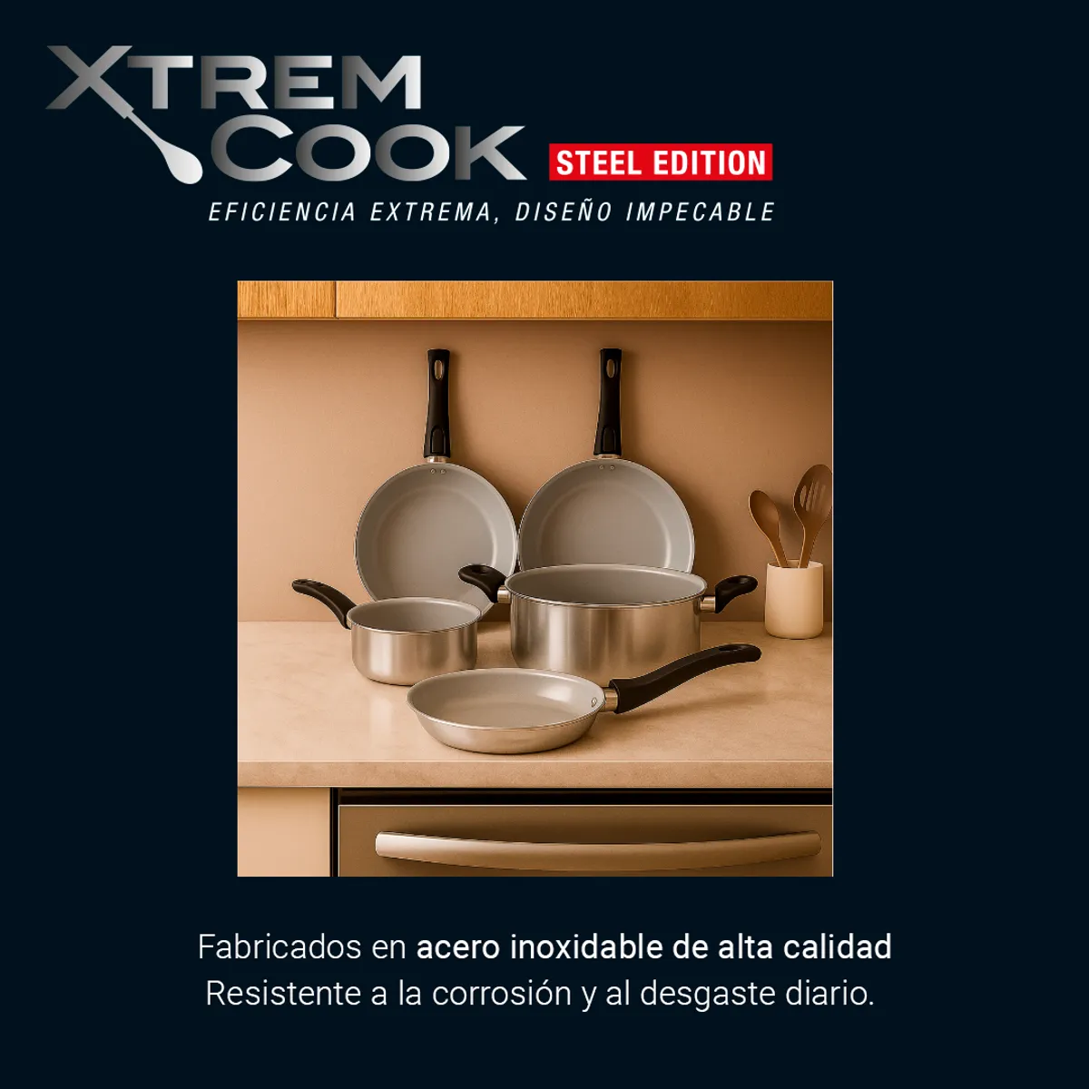 Redescubre el arte de cocinar con Xtrem Cook Steel Edition, un conjunto de ollas y sartenes diseñado para transformar tu experiencia culinaria. Este set combina la durabilidad de los materiales premium, la tecnología avanzada y un diseño impecable, asegurando resultados profesionales en cada preparación. Ya sea que busques cocinar platillos simples o crear obras maestras gastronómicas, Xtrem Cook Steel Edition será tu mejor aliado.