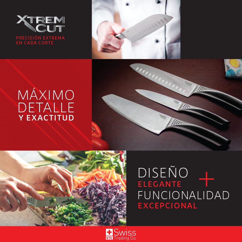 Ya no necesitarás millones de cuchillos en tu cocina, con el nuevo set de cuchillos Xtrem Cut de Acero Inoxidable con Mango Ergonómico asegúrate de obtener el corte que deseas.